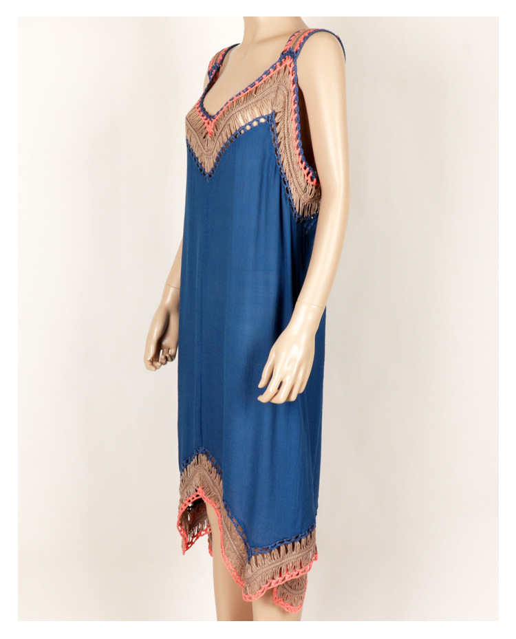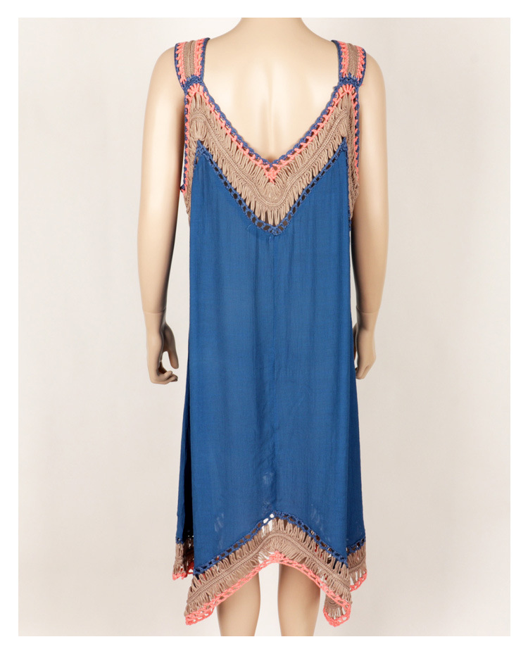 One Size Fits All Hand Crocheting Wool Yarn Slub Cotton Camisole Sleeveless Beach Maxi Dress