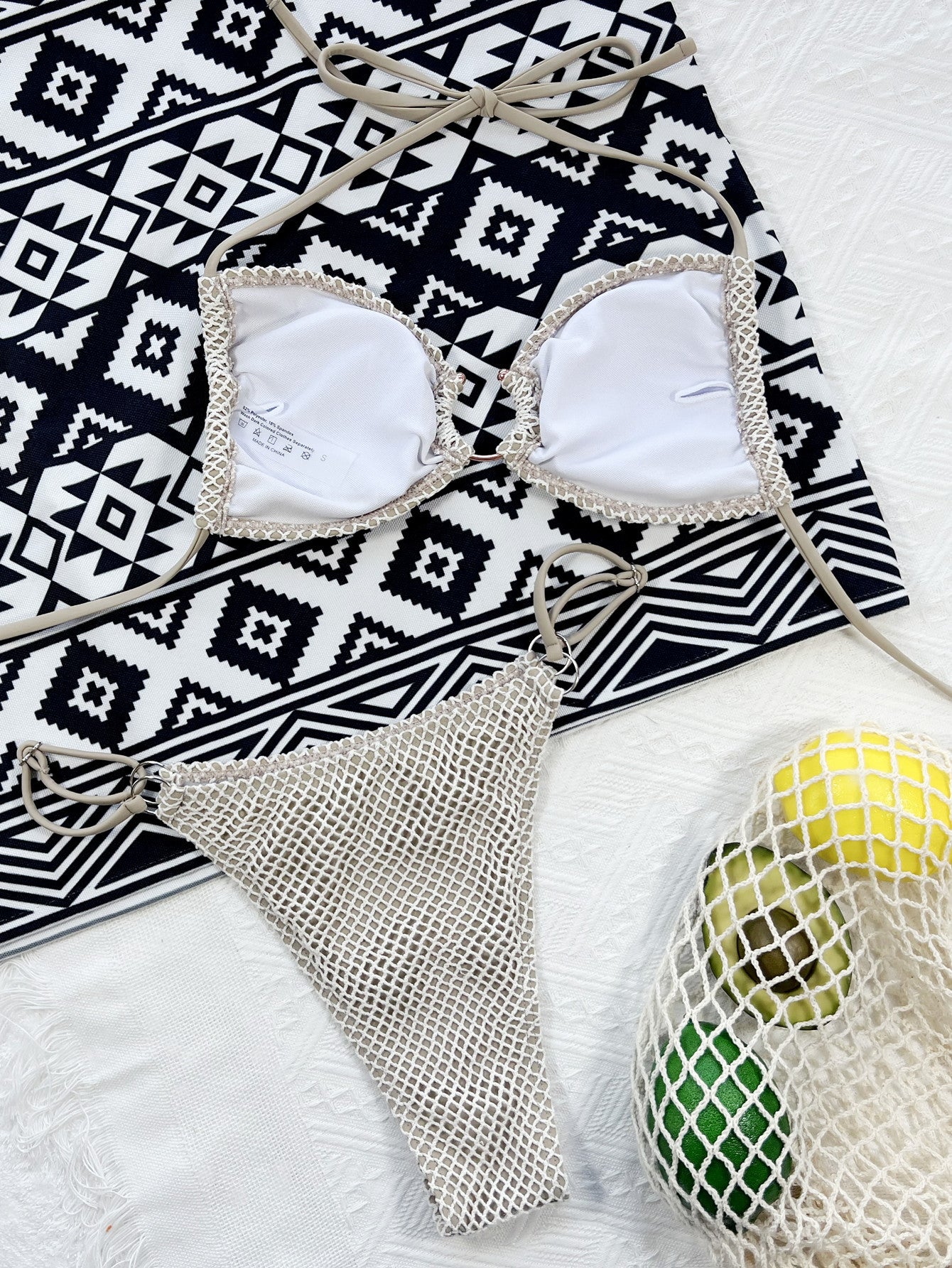 Outer Single Swimsuit Bikini Solid Color Sexy Bikini Women Seperated Swimwear Crochet Triangle Bikini