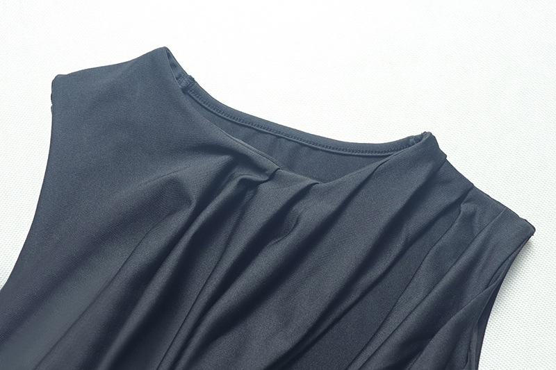 Personalized Pleated Hollow Out Cutout Solid Color Tight Crew Neck Split Maxi Dress Loose Elegant Women Clothing