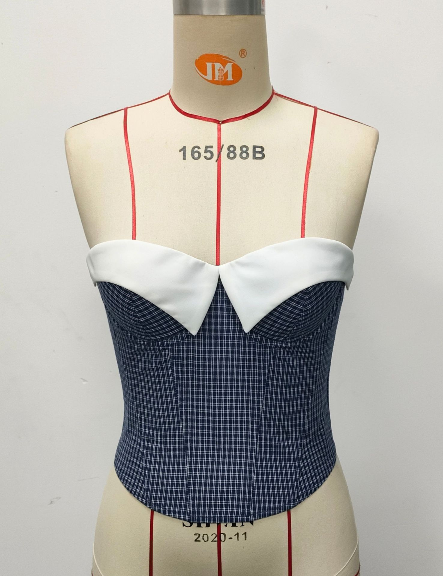 Plaid Stitching Contrast Color Office Niche Wear Sexy Lacing Backless Boning Corset Tube Top