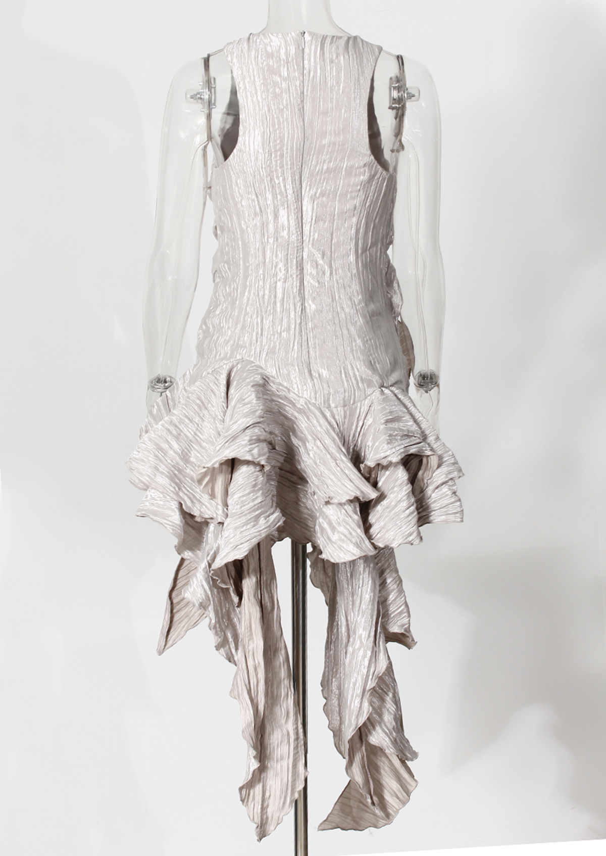 Pleated Three Dimensional Dress Summer Retro Floral Texture Irregular Asymmetric Ruffled Sleeveless Dress
