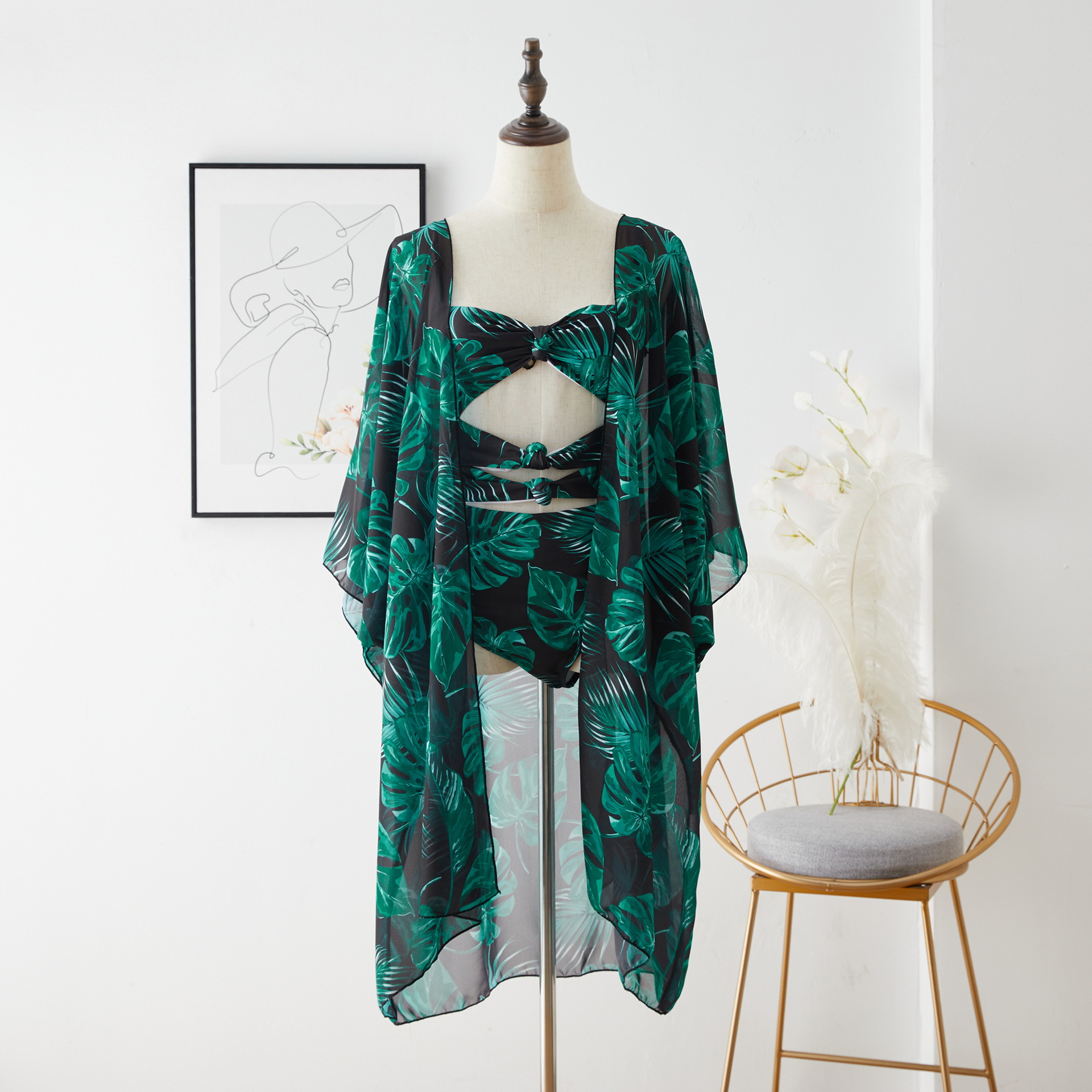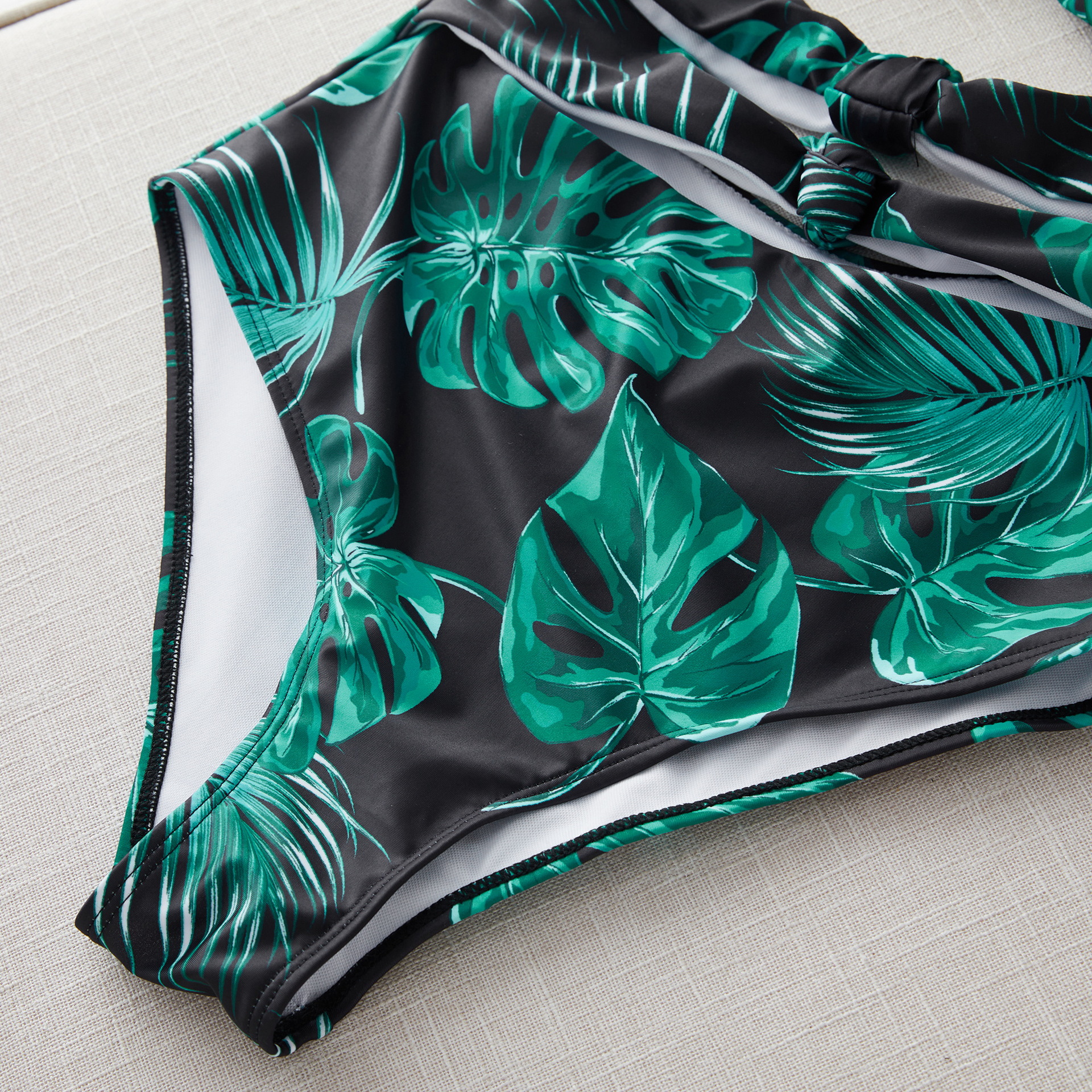 Printed Hollow Out Cutout Tube Top One Piece Swimsuit Women Blouse Two Piece Set Swimsuit