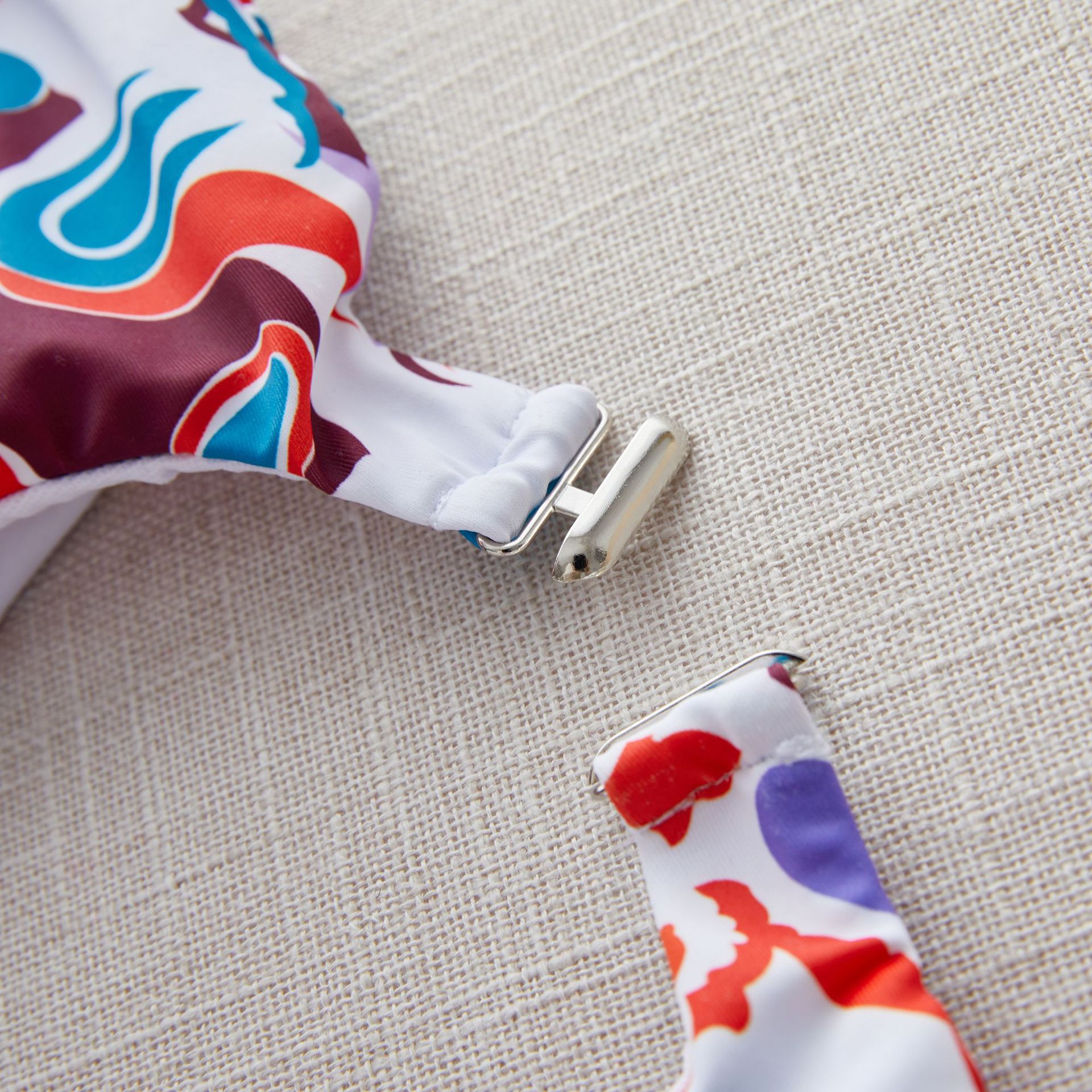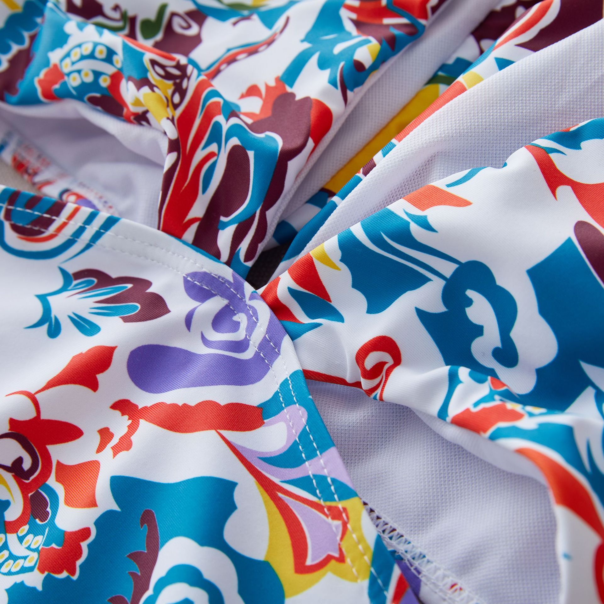 Printed Spinning Long Sleeve Deep V Plunge One Piece Swimsuit Women High Waist Bikini Swimsuit