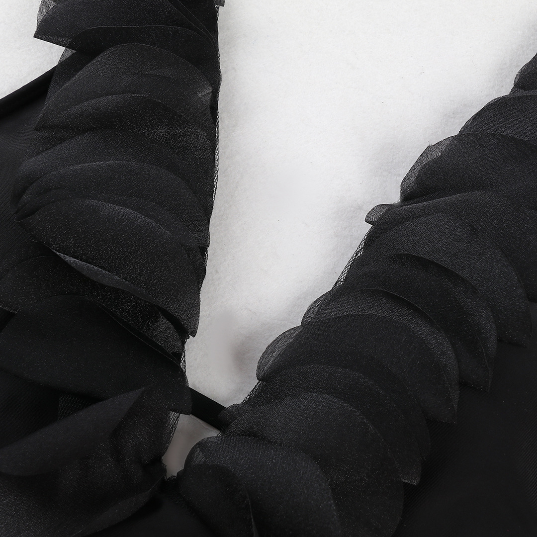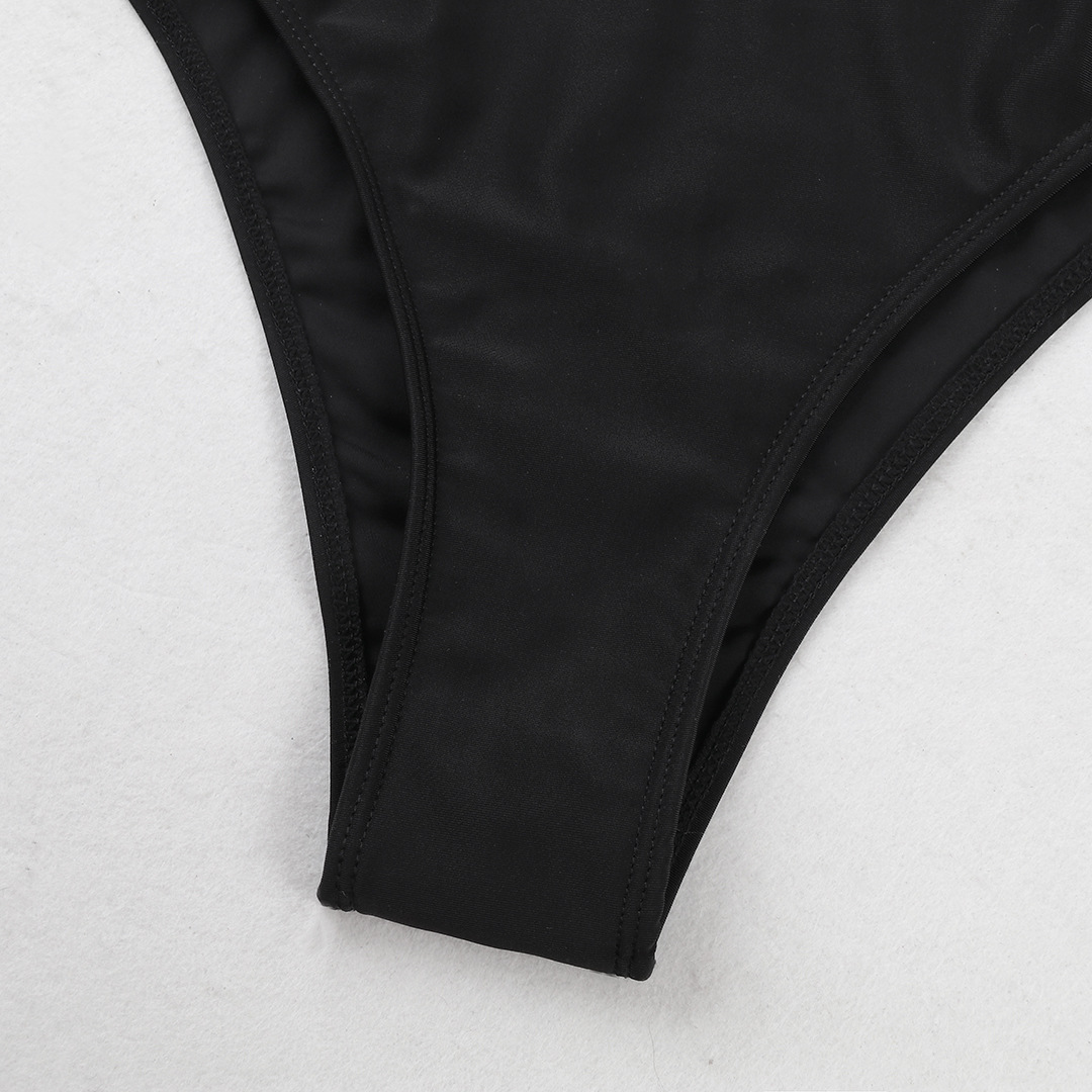 Pure Black One Piece Swimsuit Women Overall Two Piece Set Lace up Deep V Plunge Sexy Swimsuit