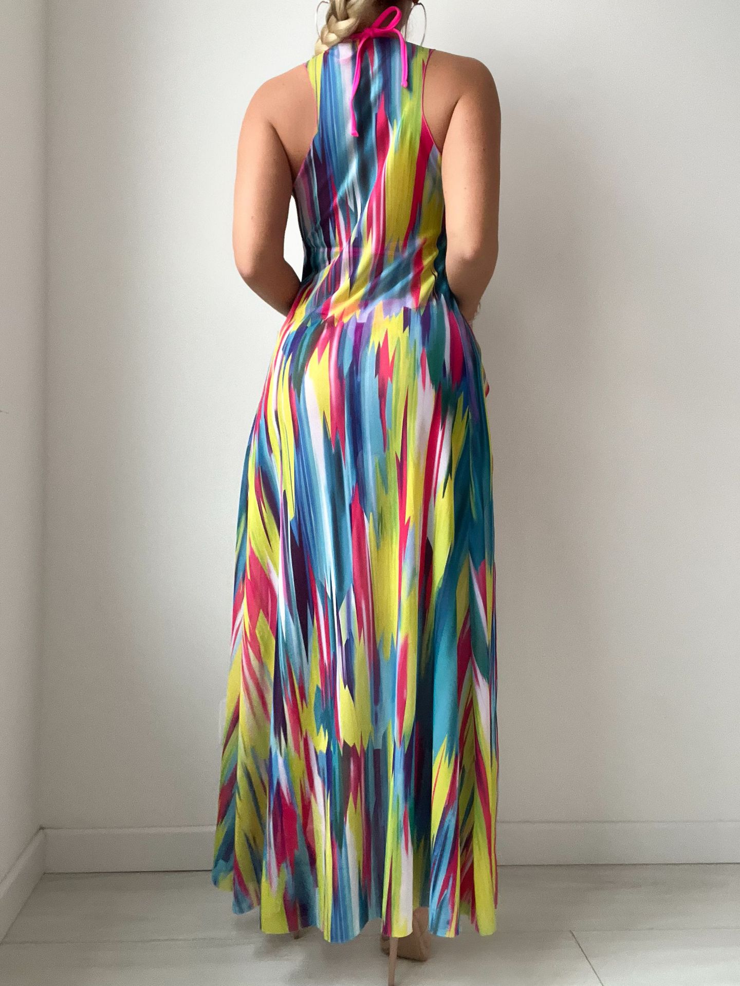 Rainbow Printing Halter Beach Cover Up Three Piece Set Sexy Swimsuit