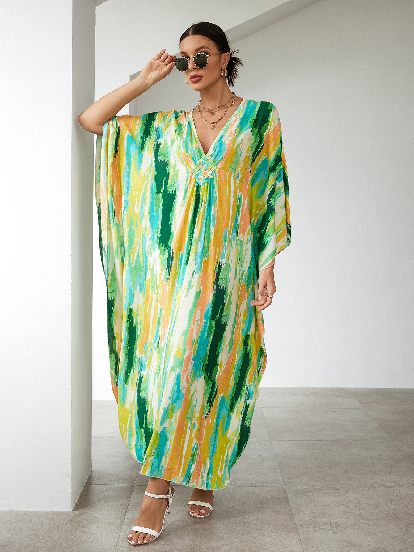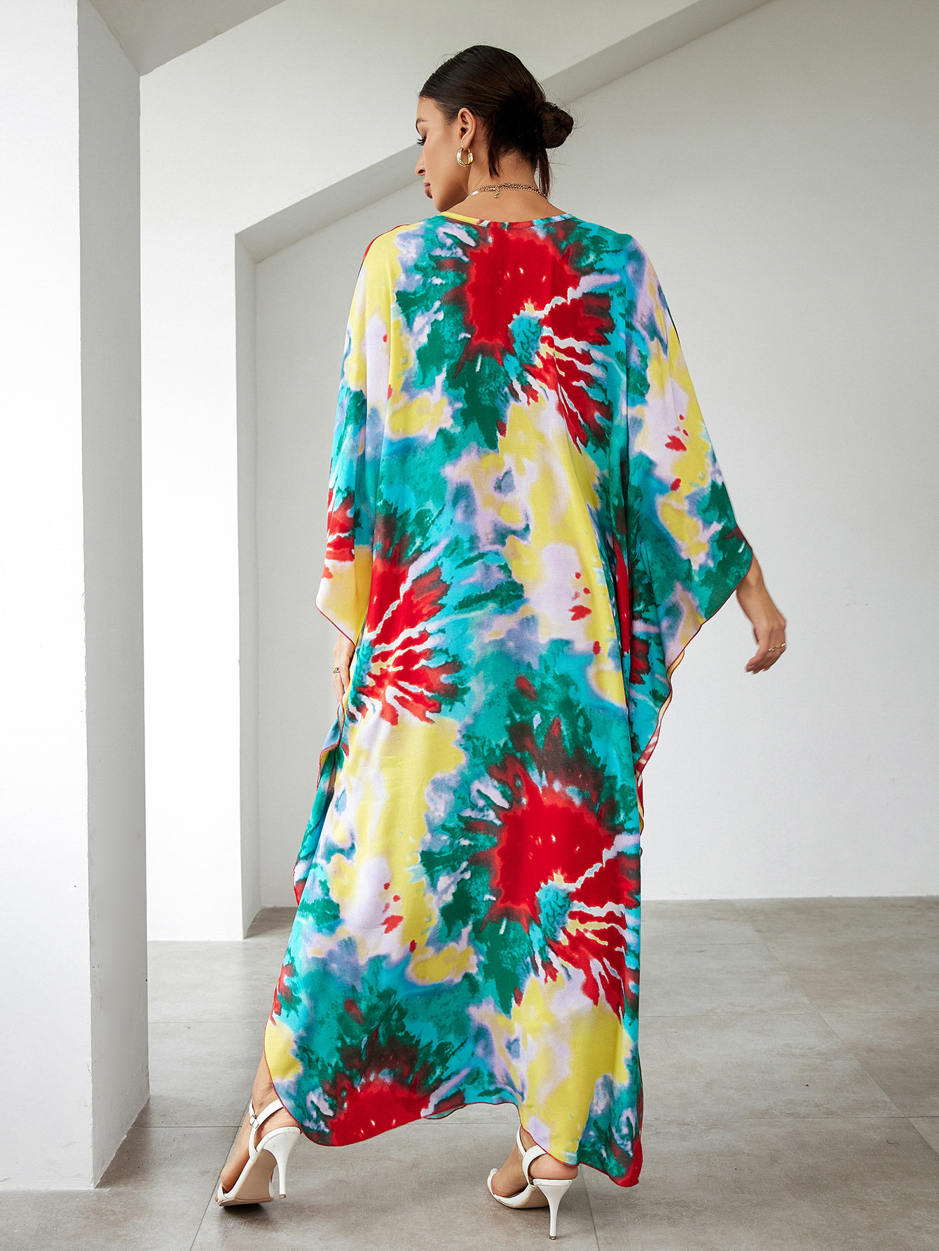 Rayon Print Holiday Loose Robe Beach Jacket Maxi Dress Bikini Cover