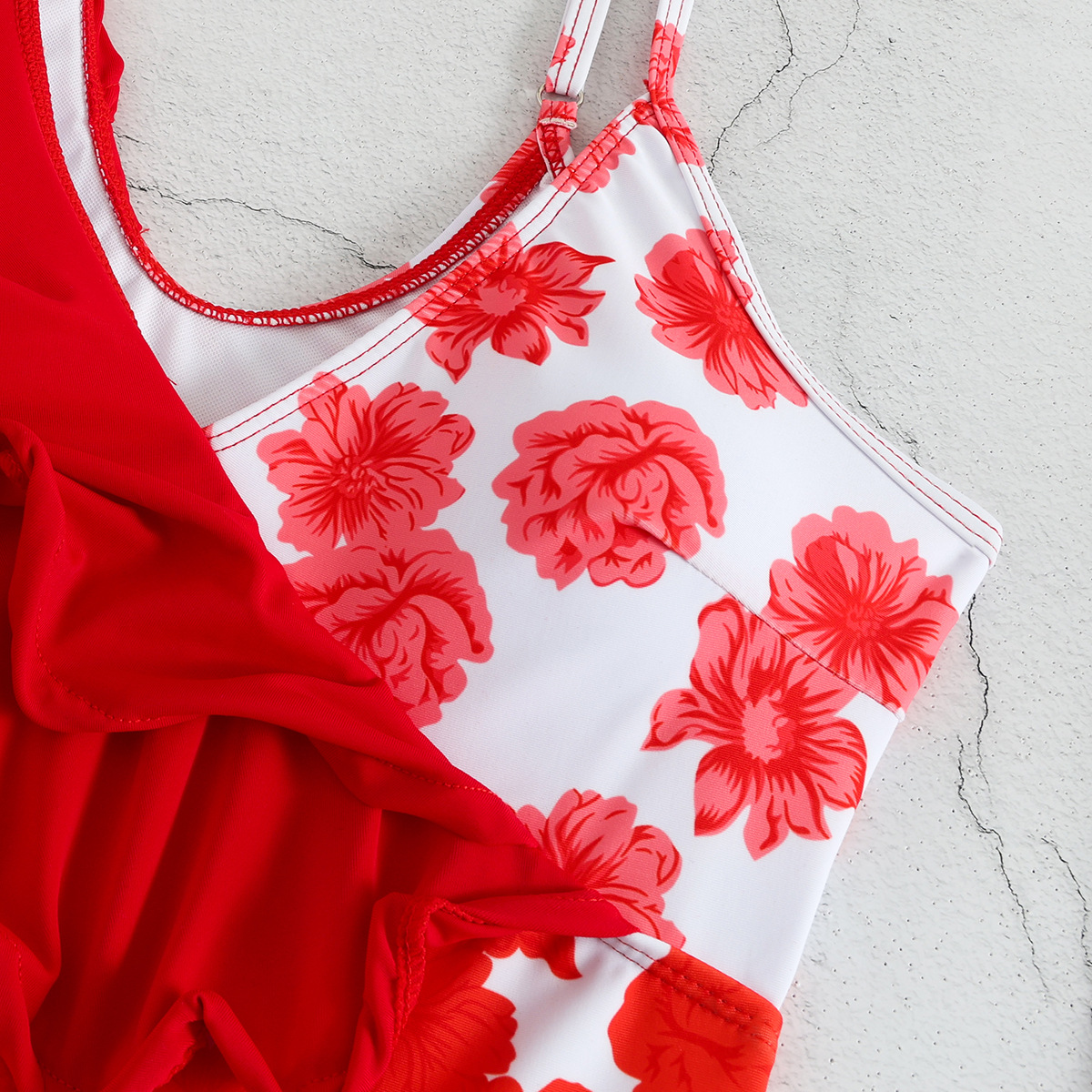 Retro Gradient Floral Print One Piece Swimsuit Women Skirt Two Piece Set