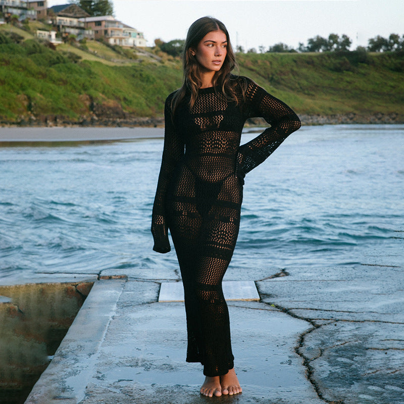 Sexy Hollow Out Cutout Knitted Dress Beach Cover Up Solid Color Bikini Swimsuit Blouse Crochet hook