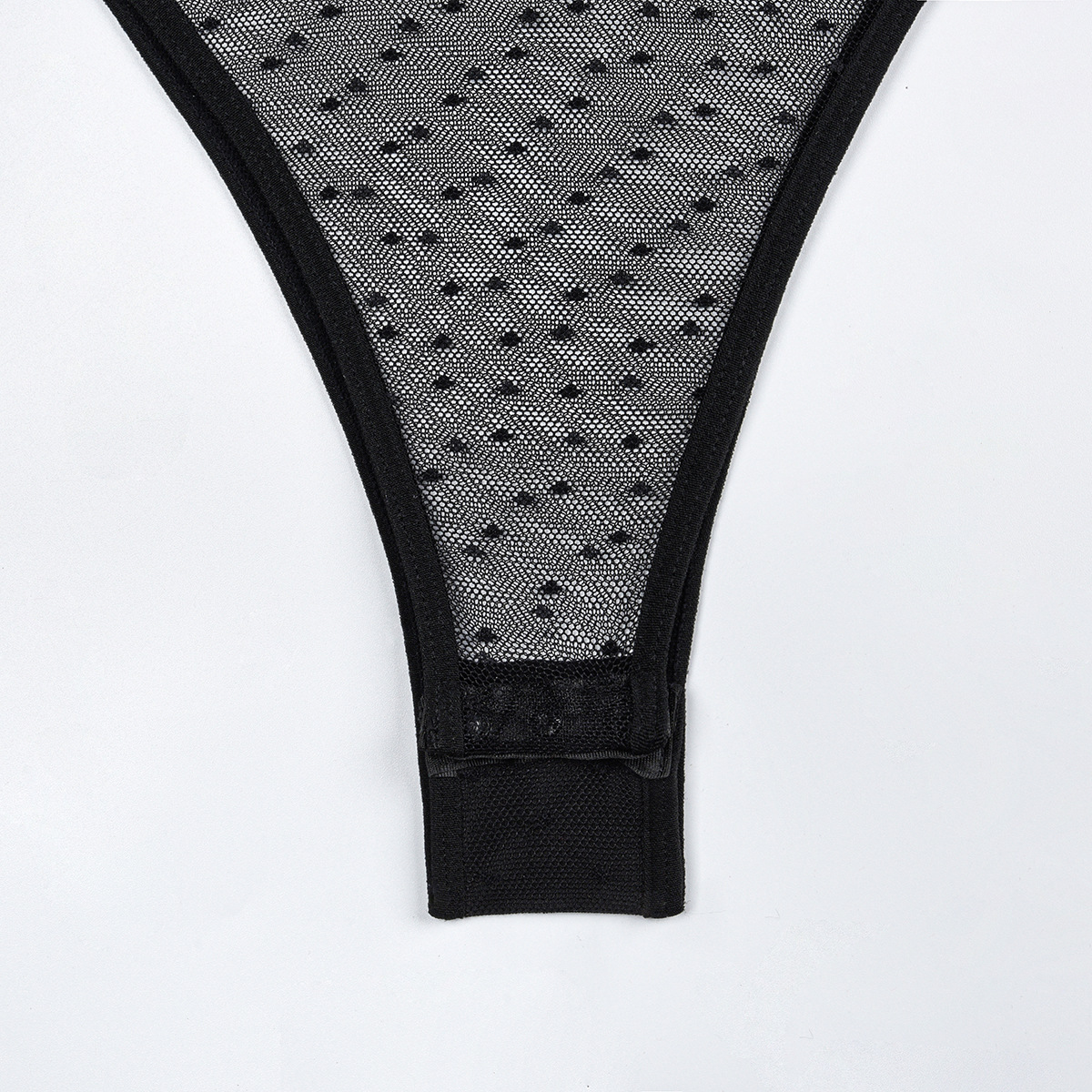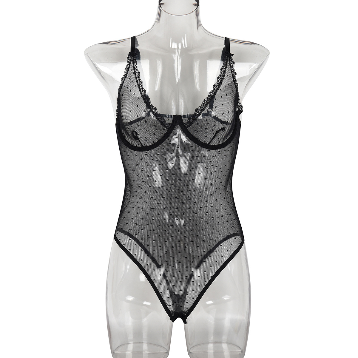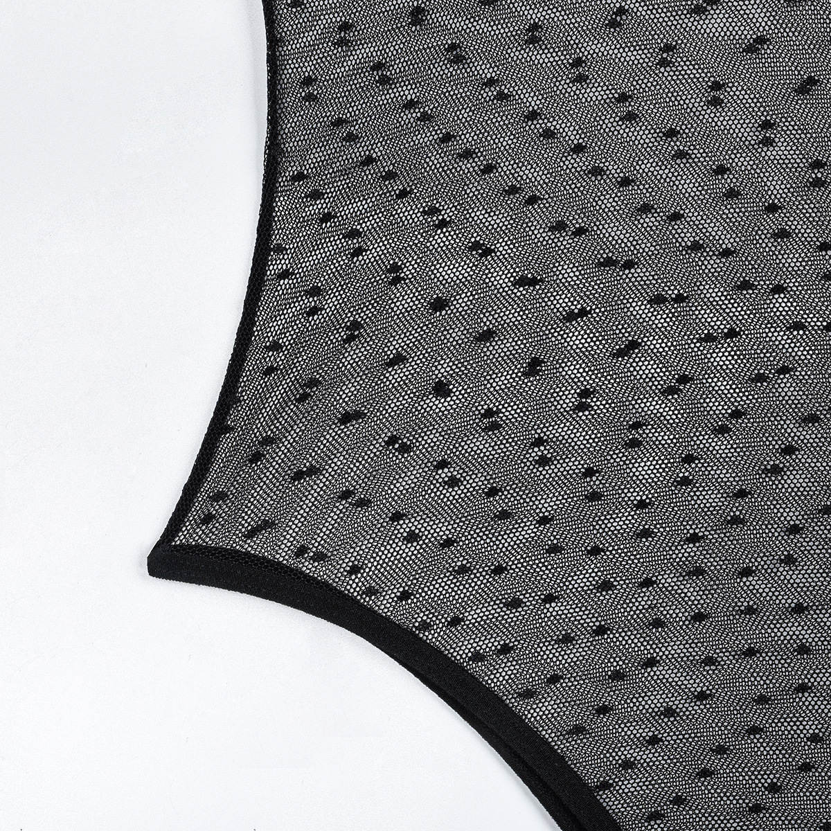 Sexy Lingerie Bottoming Women Summer Polka Dot Mesh See Through Comfortable Close Fitting Jumpsuit