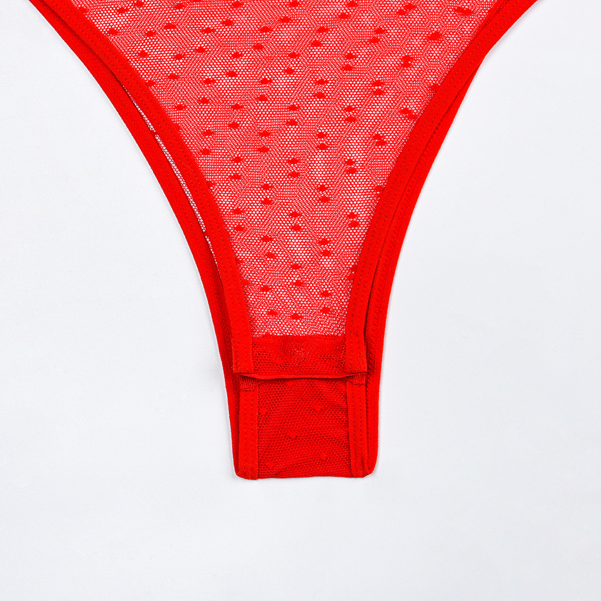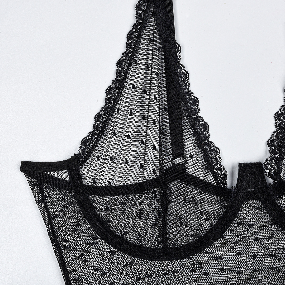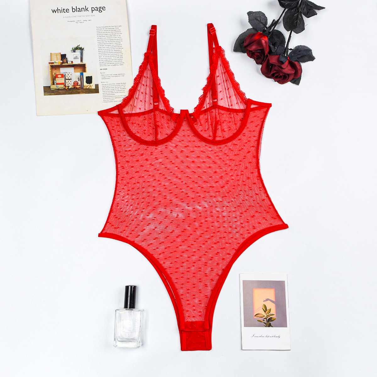 Sexy Lingerie Bottoming Women Summer Polka Dot Mesh See Through Comfortable Close Fitting Jumpsuit