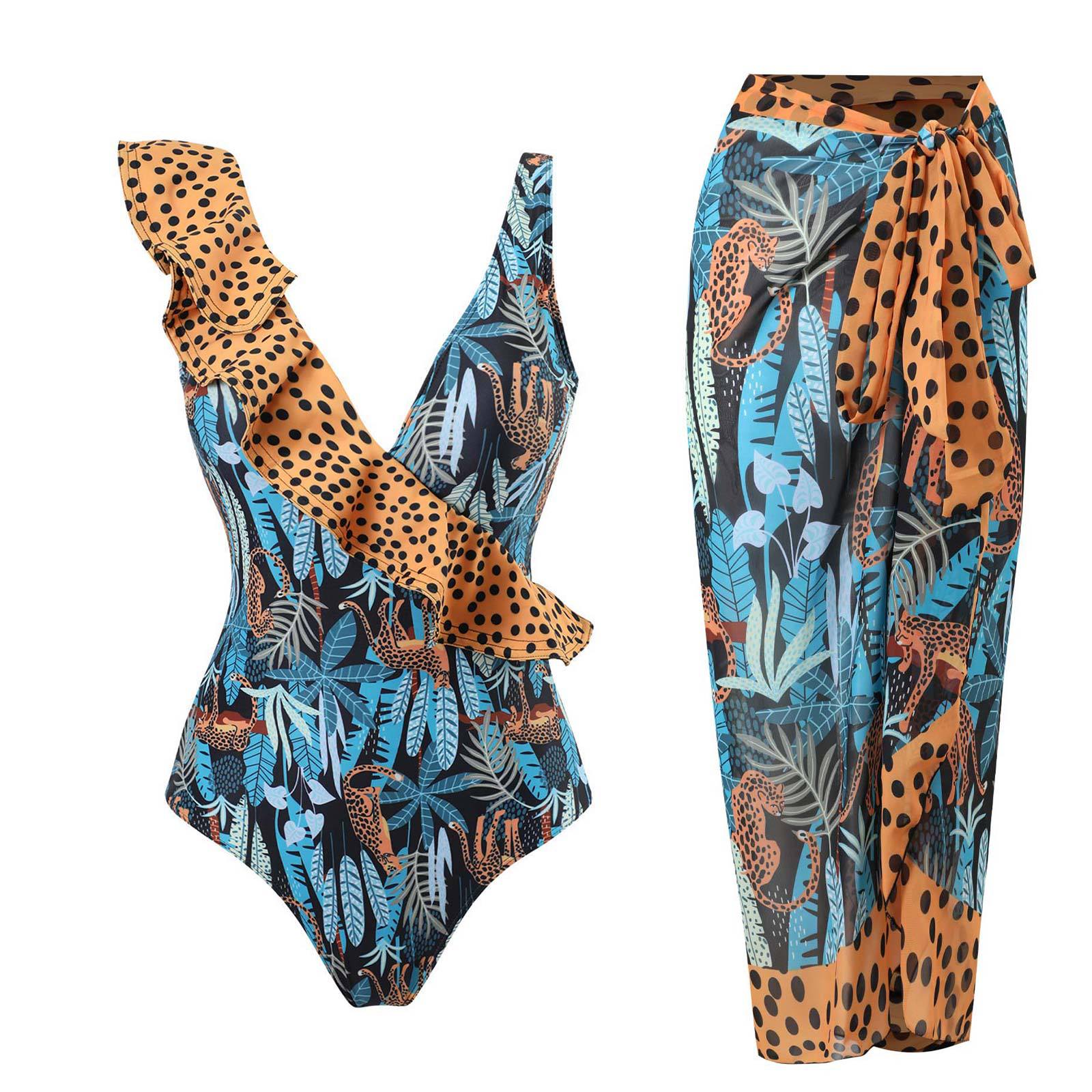 Sexy Swimsuit Women Bikini Leopard Print Ruffle Swimwear Bikini Chiffon Dress