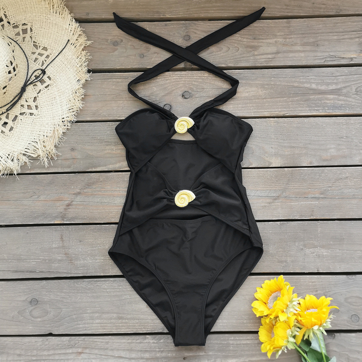 Sexy Tube Top Hollow Out Cutout out Pure Black Halter One Piece Swimsuit for Women One Piece Swimsuit