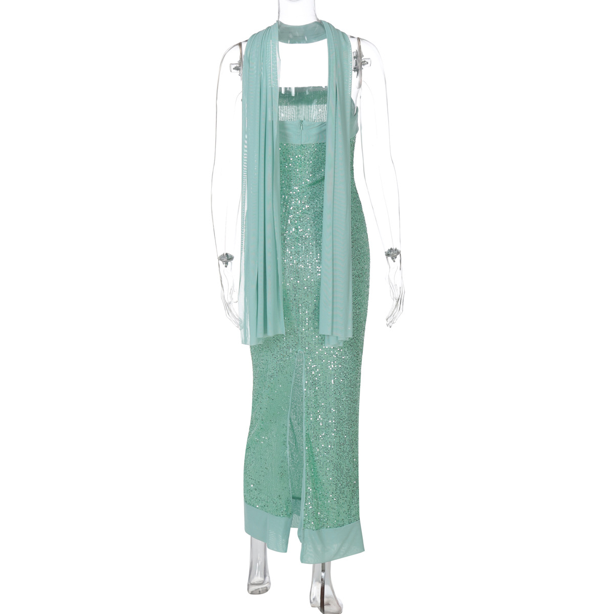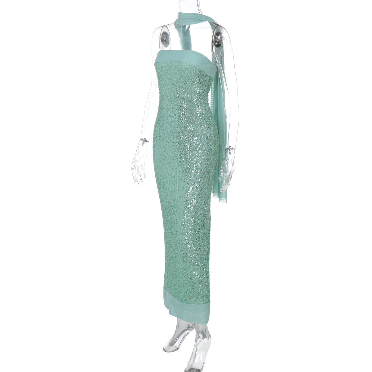 Sexy Tube Top Solid Color Slim Long Socialite Close-Fitting Sequ Dress Women