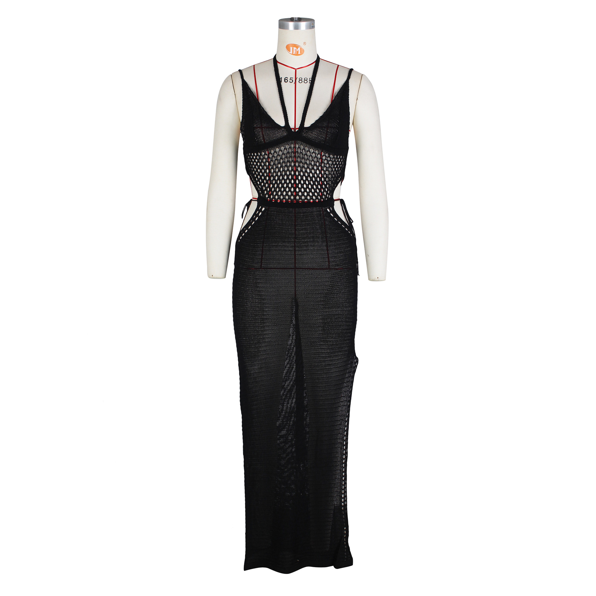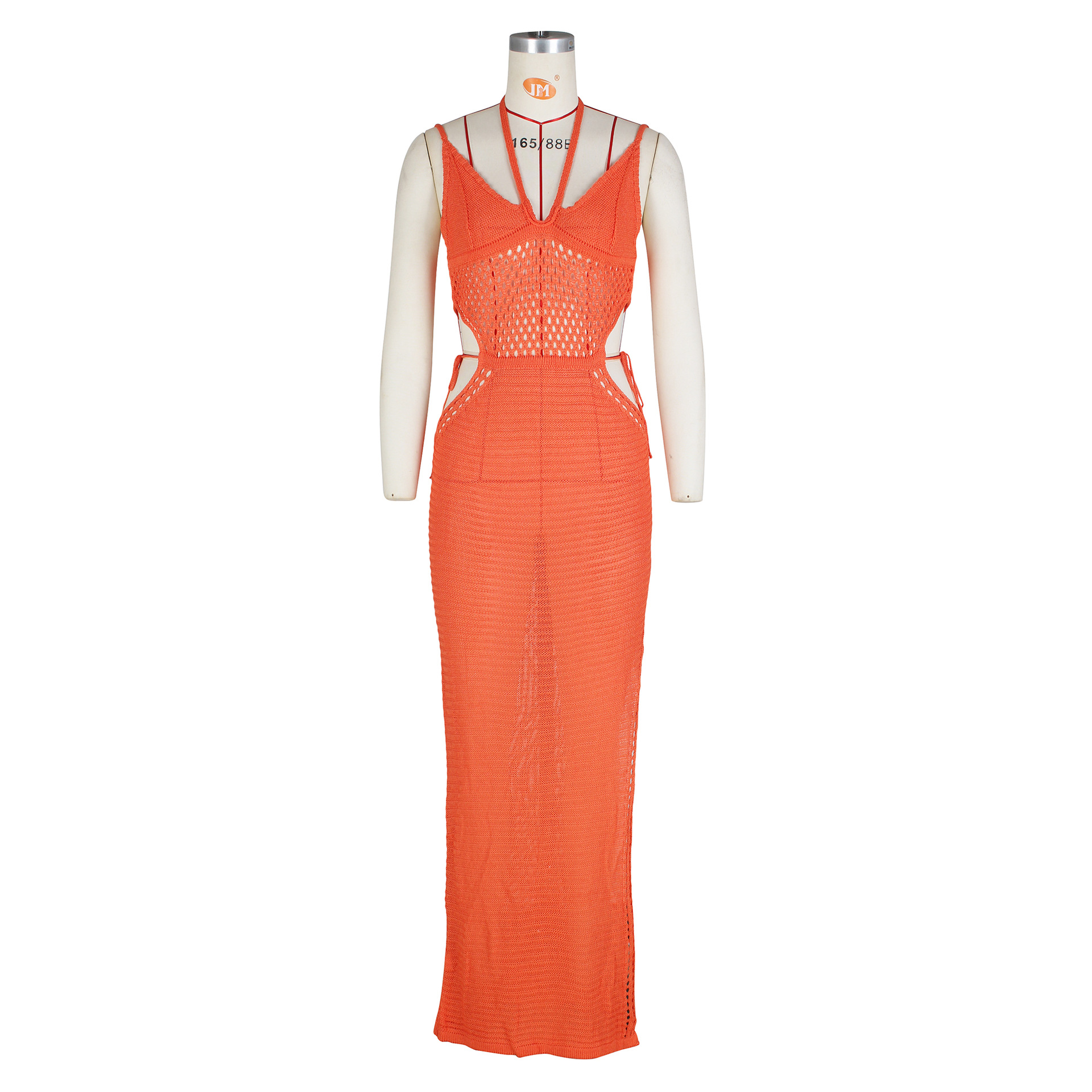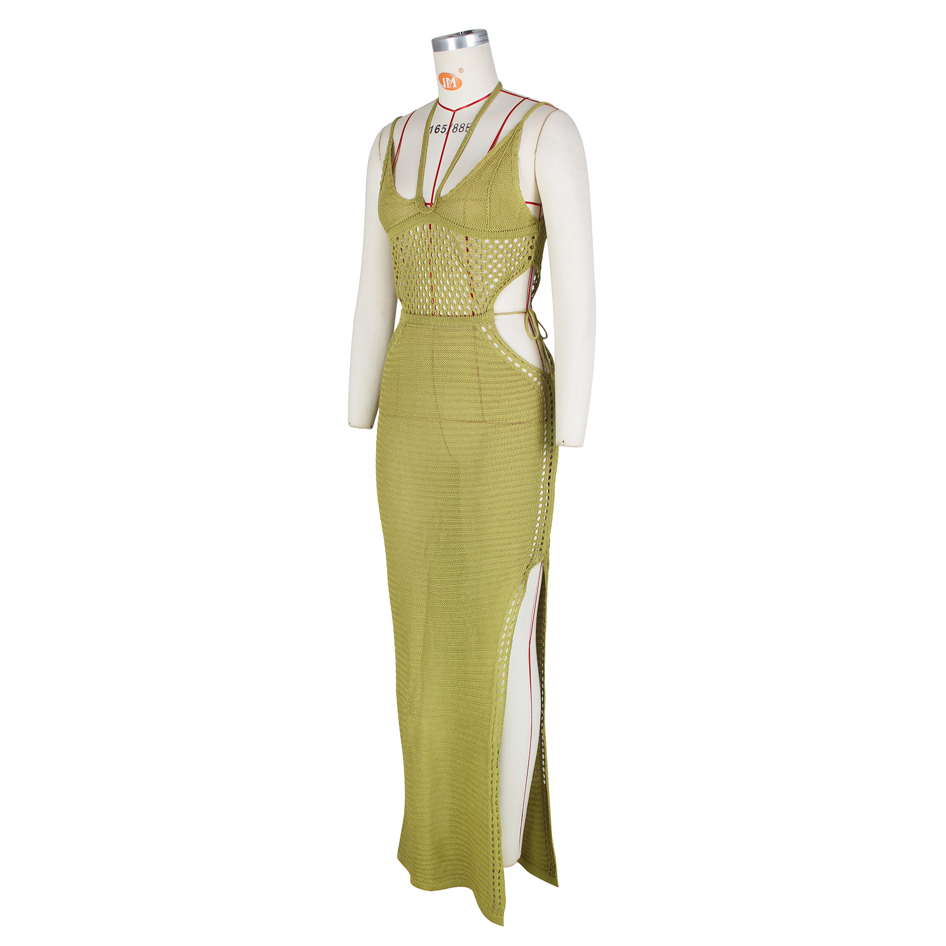 Sexy Women Clothing Ladies Halter Cropped Outfit Spaghetti Straps Knitted Dress Backless Beach Knitted Dress