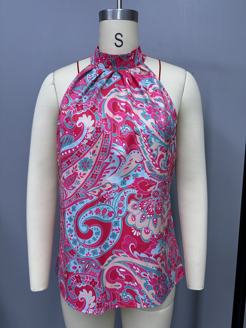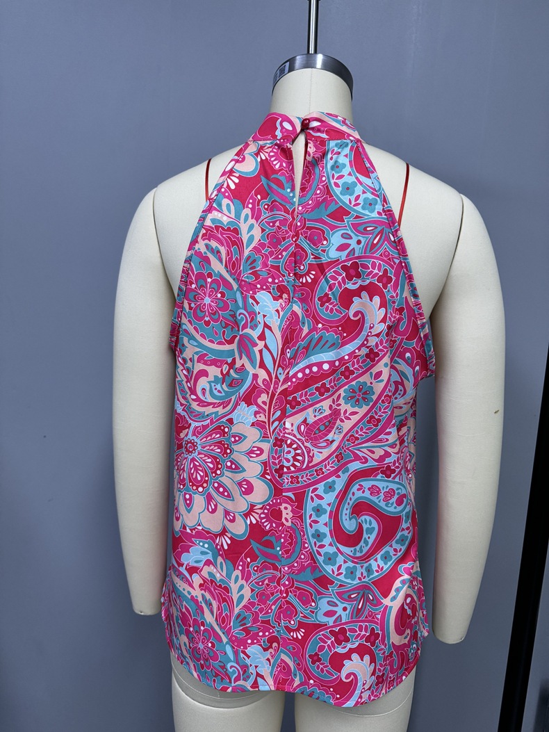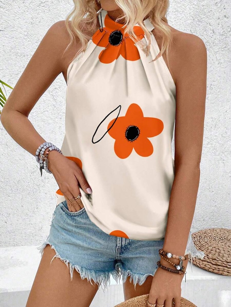 Shirt Spring Summer Casual Sleeveless Halter Floral Printed Shirt Top