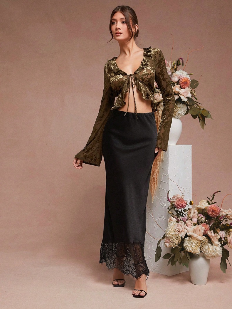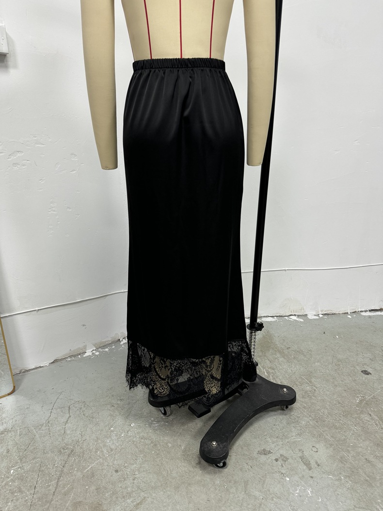 Skirt Lace Stitching Satin Satin Skirt Socialite Women Clothing