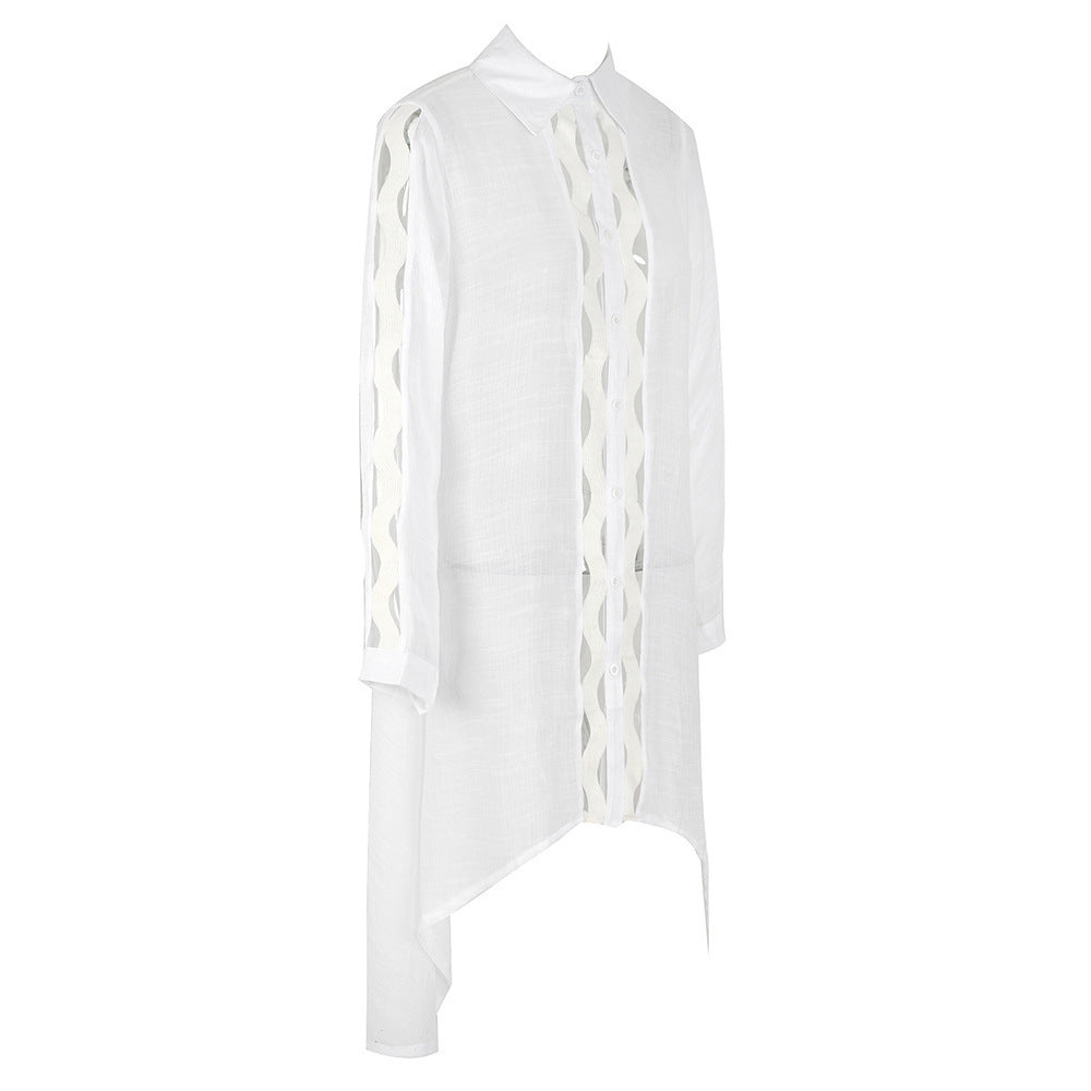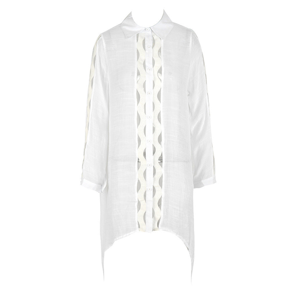 Slub Cotton Patchwork Edge Shirt Sun Protection Cardigan Vacation Beach Coat Bikini Cover up Blouse