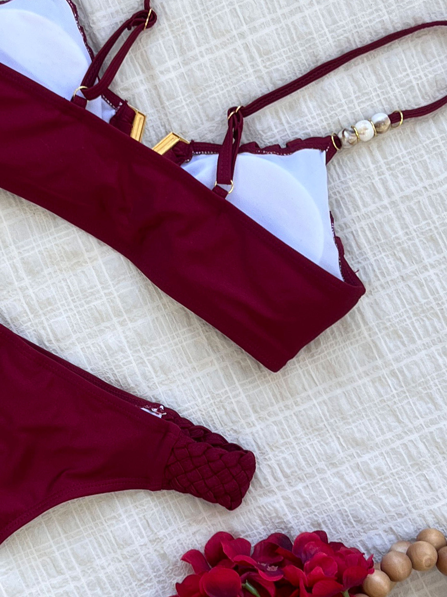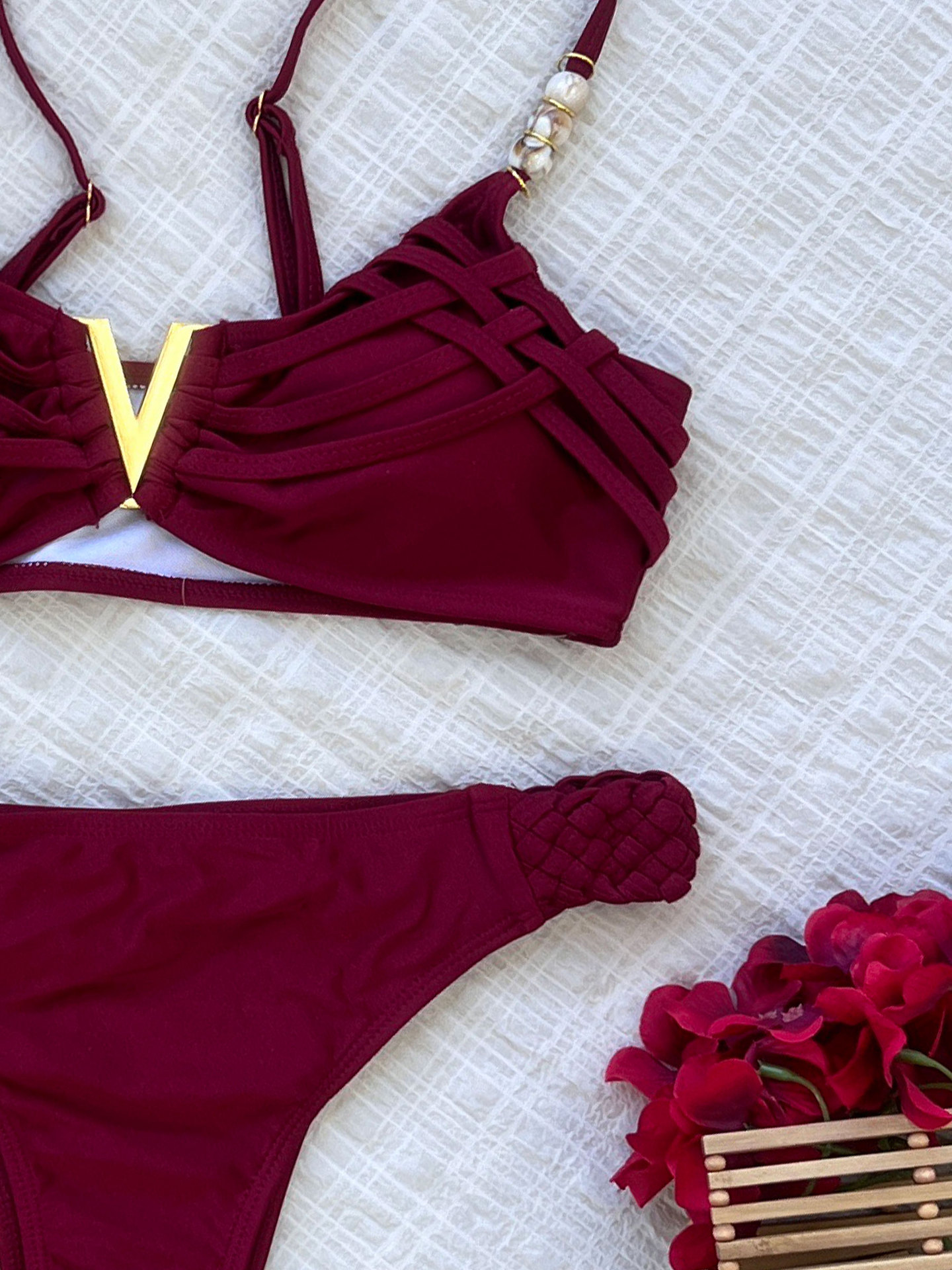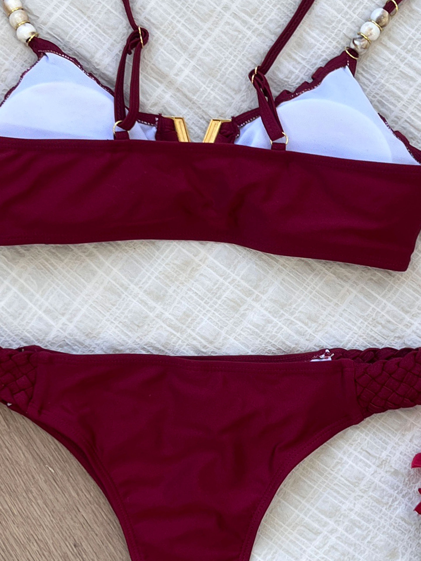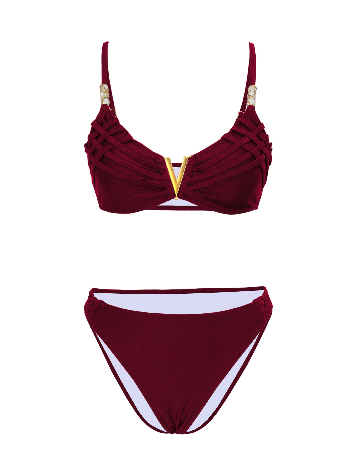 Solid Color Backless Sexy Split Swimsuit Women Bikini Woven