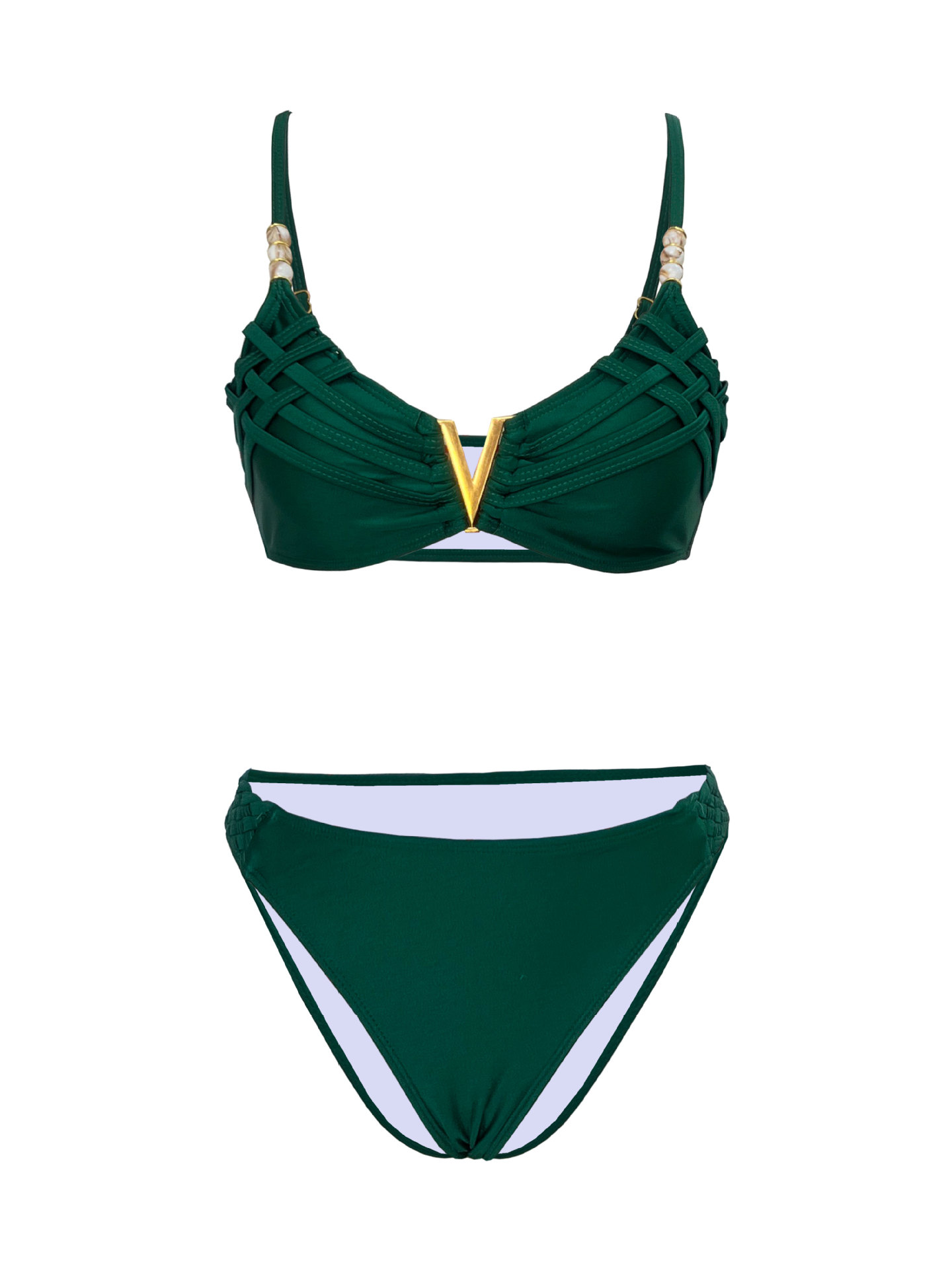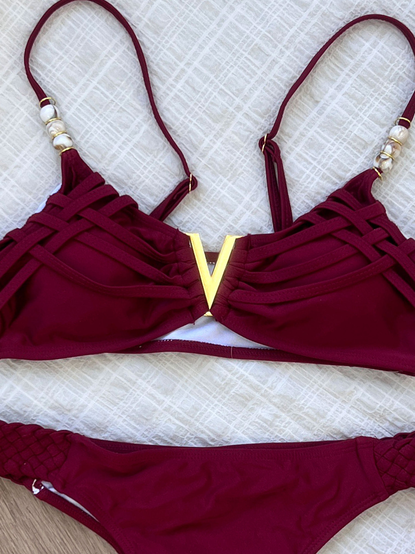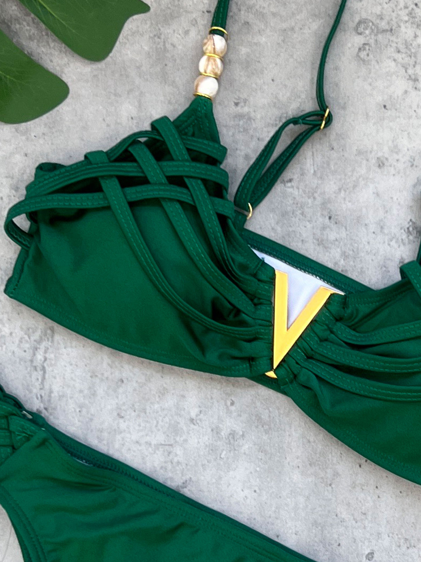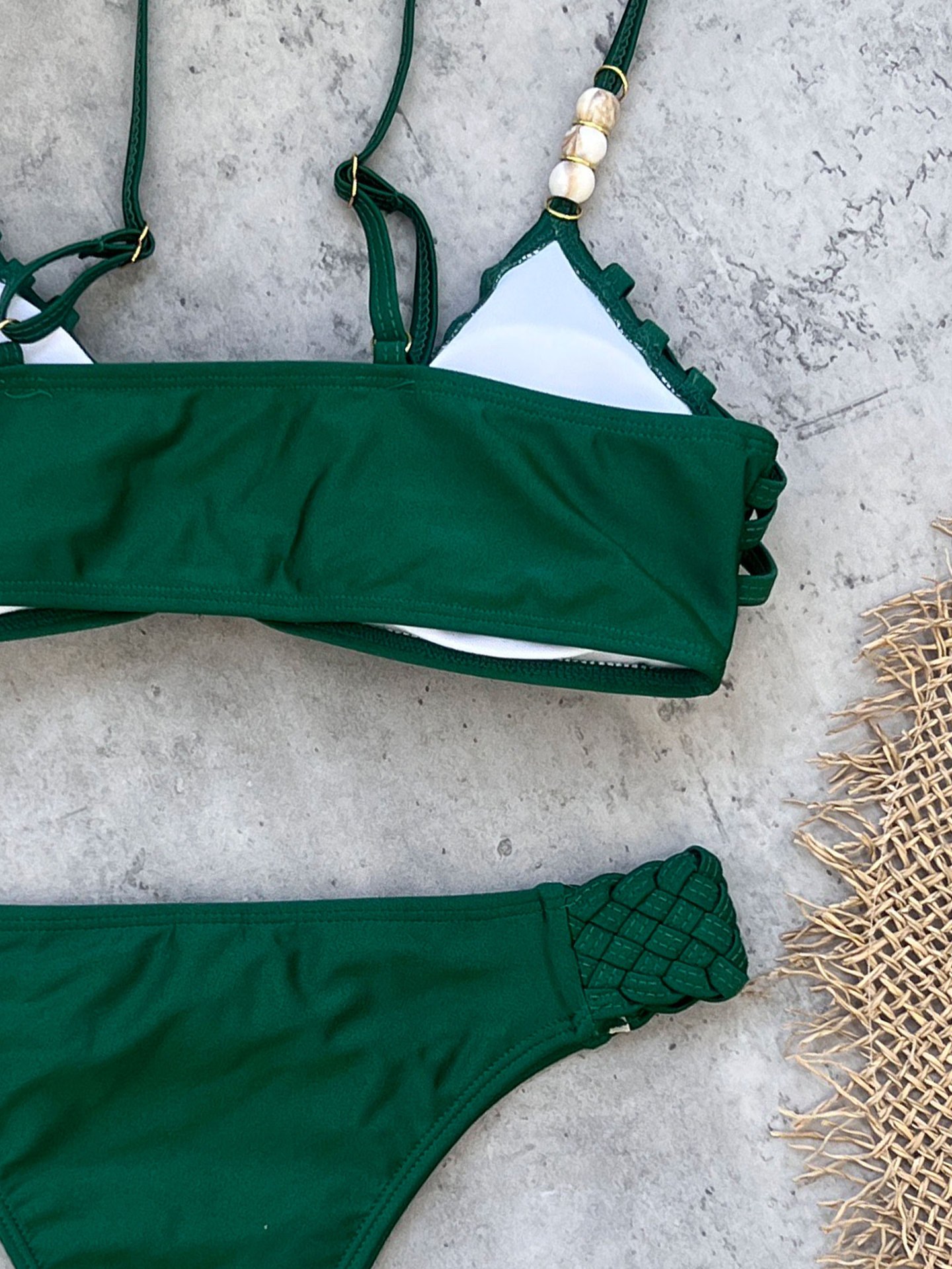 Solid Color Backless Sexy Split Swimsuit Women Bikini Woven