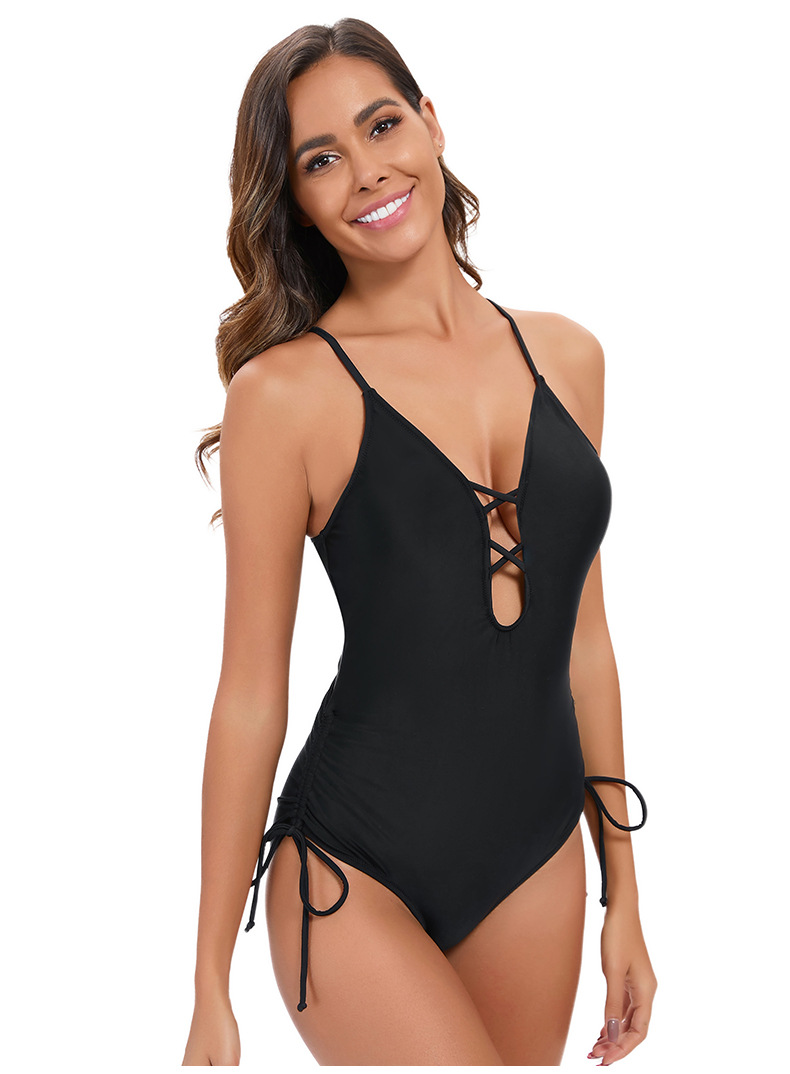 Solid Color Triangle One Piece Swimsuit Women Sexy Backless Hollow Out Cutout out Strap Swimsuit