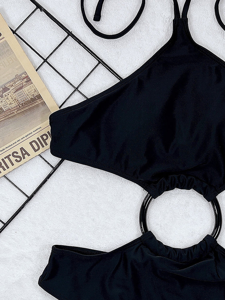 Solid One Piece Swimsuit Women Bandeau Bathing Suits Sexy Swimwear