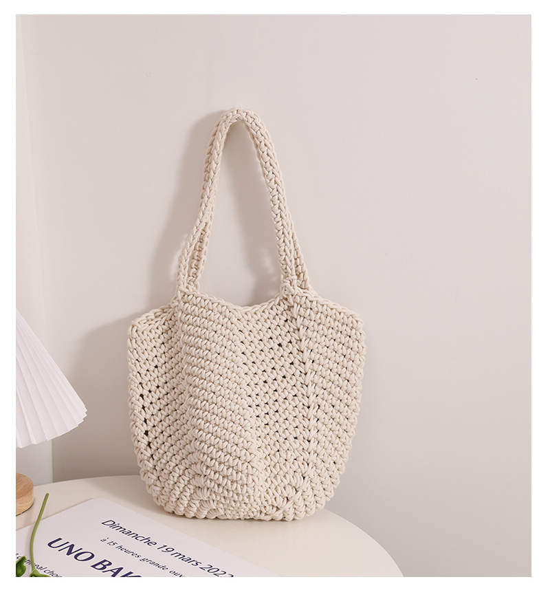 South Korea Vintage Shoulder Cotton Thread Woven Bag Crochet Handbag Straw Bag Vacation Beach Bag