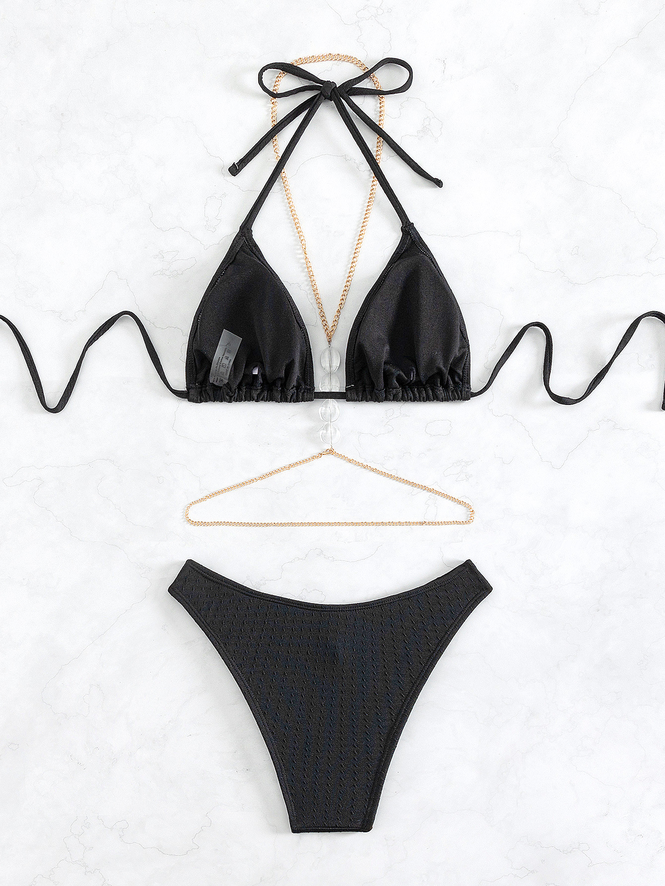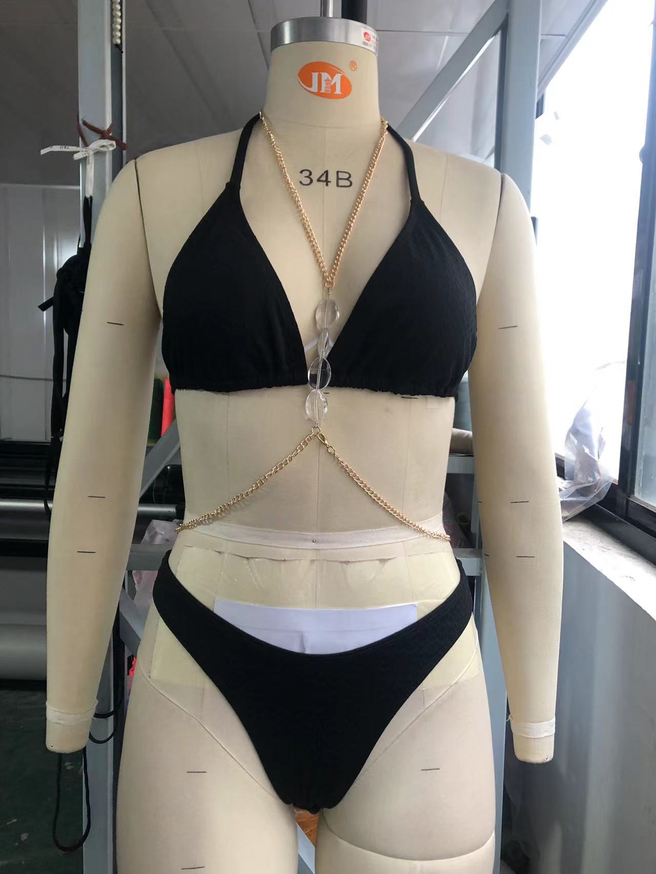 Split Swimsuit Women Halter Snake Chain Transparent Rhinestone Chest Necklace Beach Bikini
