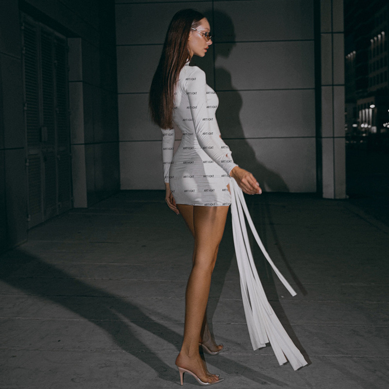 Spring Arrival Dress Sexy Round Neck Long Sleeve Slim Fit Hip Wrapped Short Dress Women
