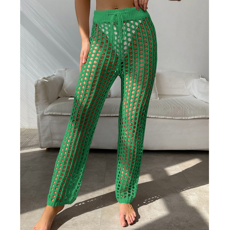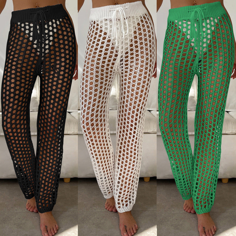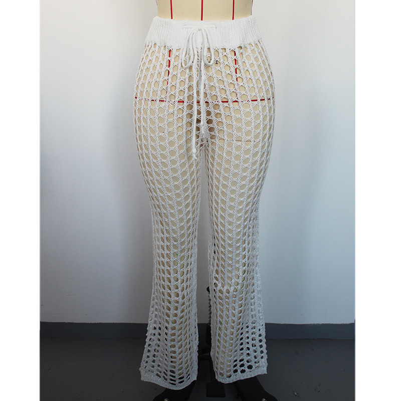 Spring Ladies Knit Casual Sexy Slim Beach Hollow Out Cutout out Sun Protective Pants Crochet hook