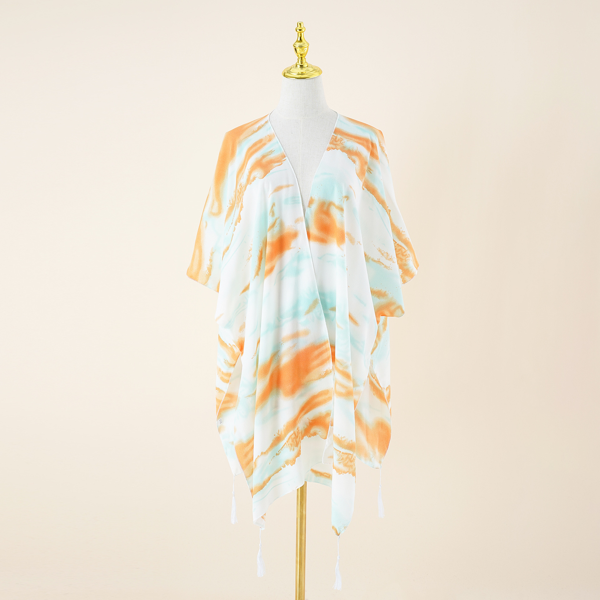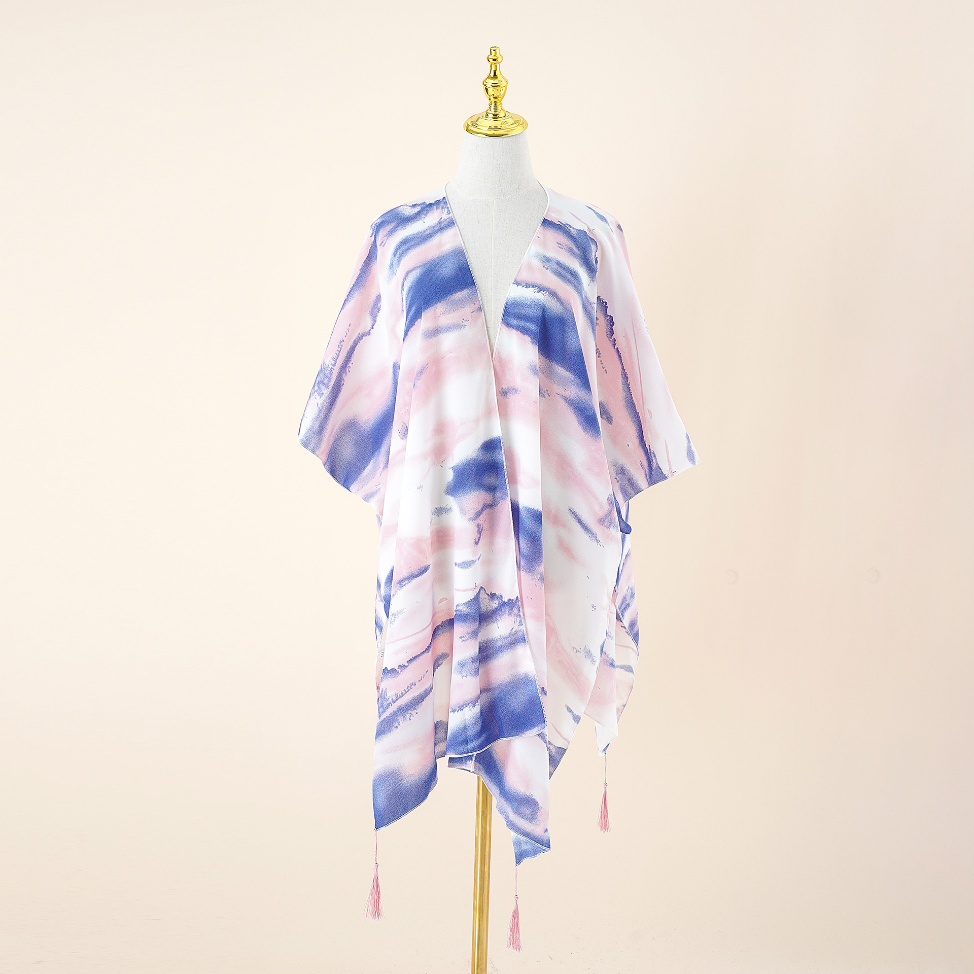 Spring Summer Striped Color Matching Tassel Shawl Beach Sun Protection Sunshade Cardigan Coat