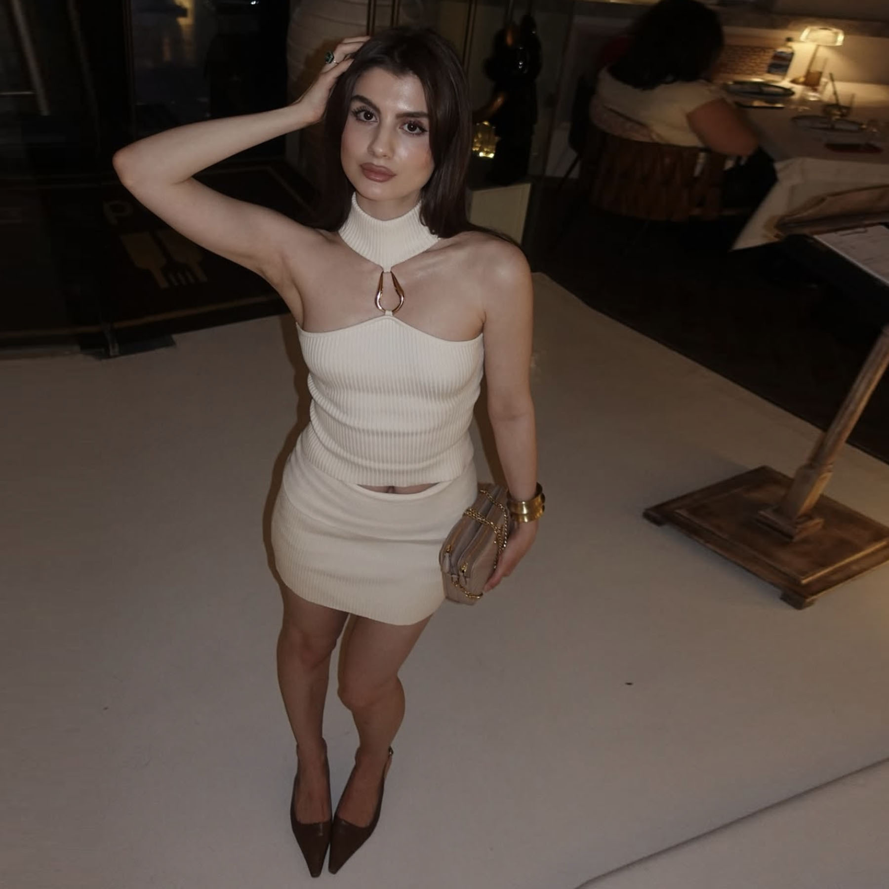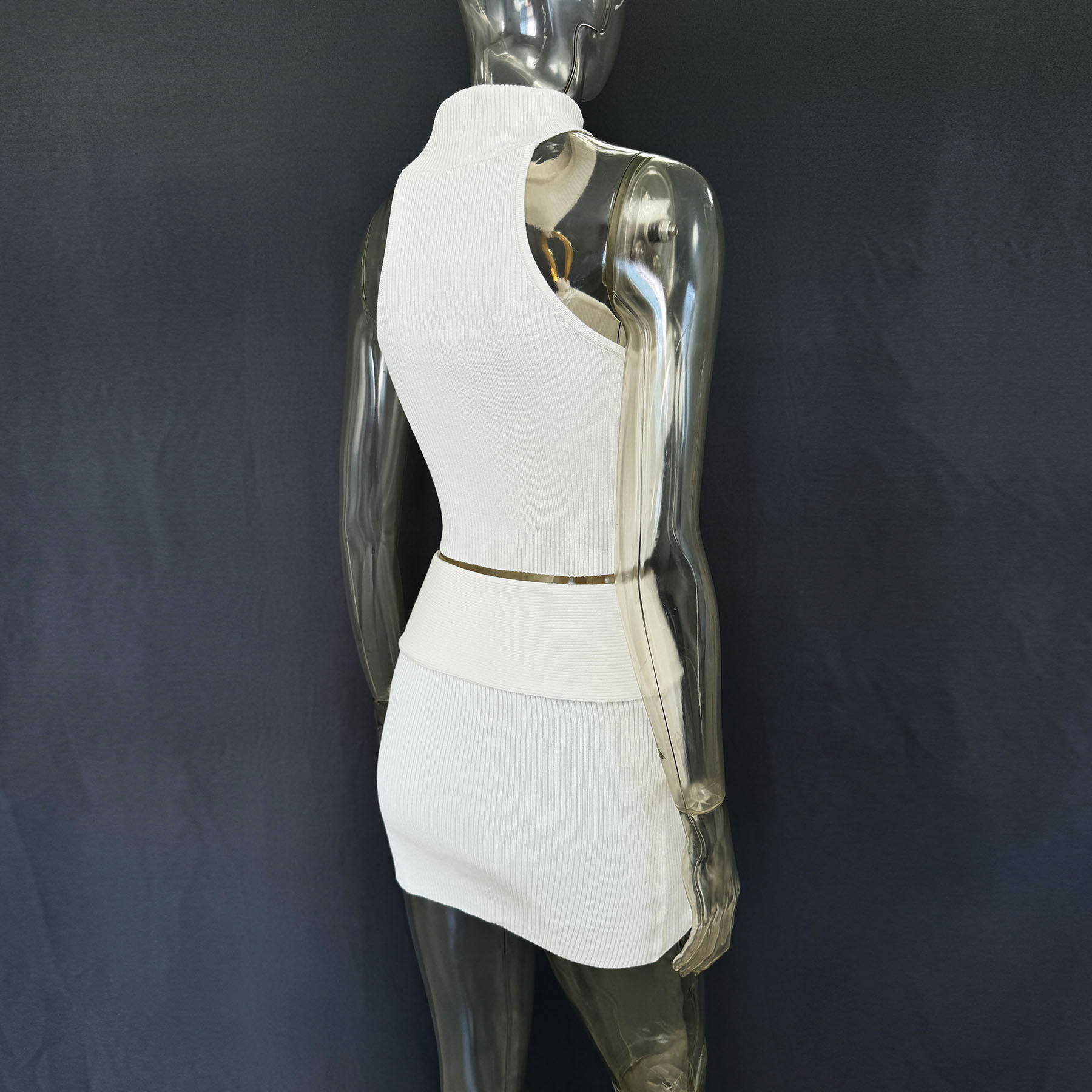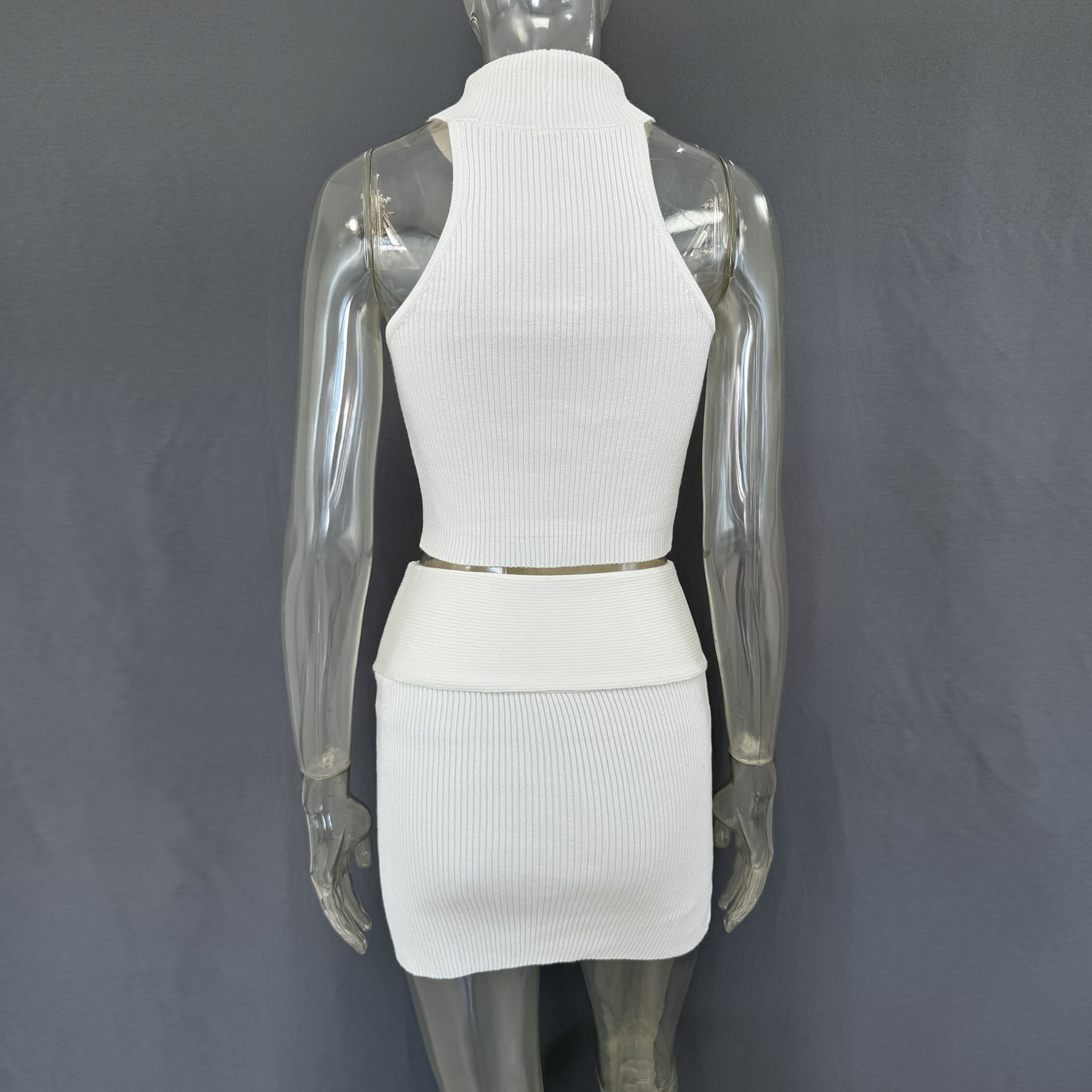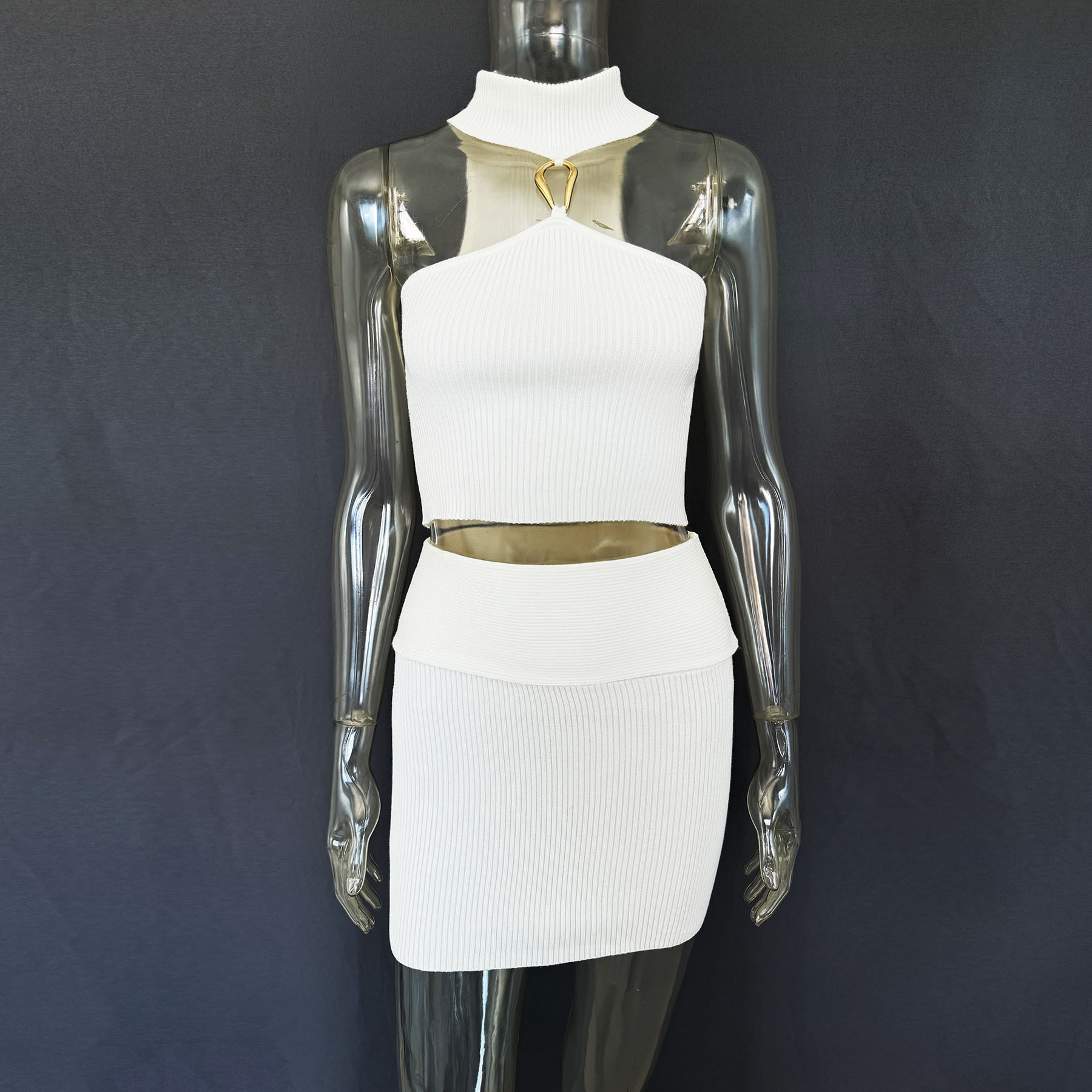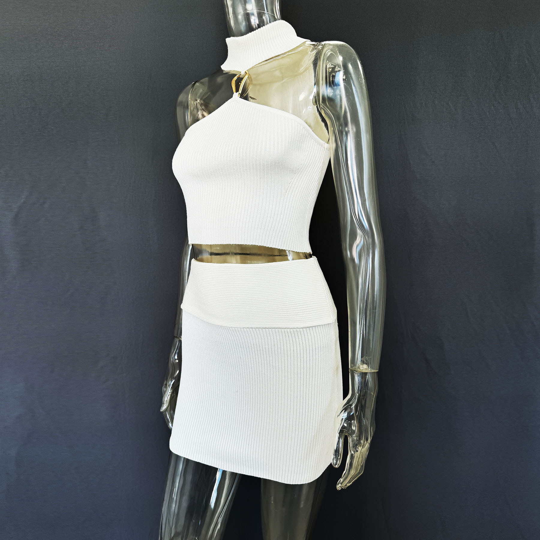 Spring Summer Women Special Shaped Ring Sleeveless Vest Short Skirt Woolen Two Piece Sets Women