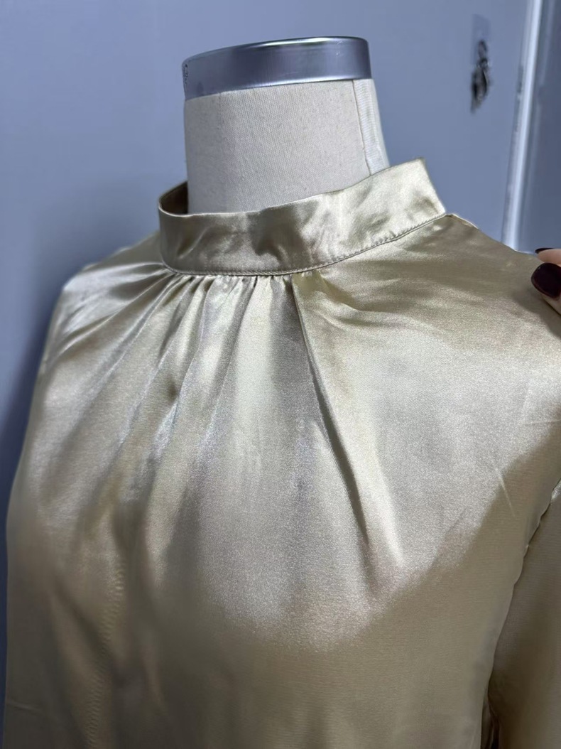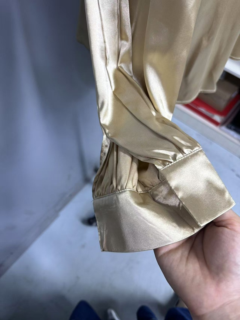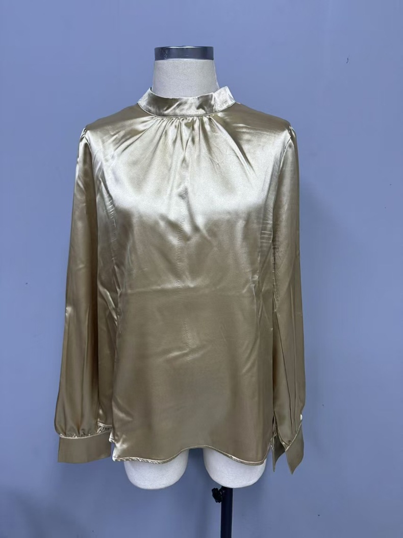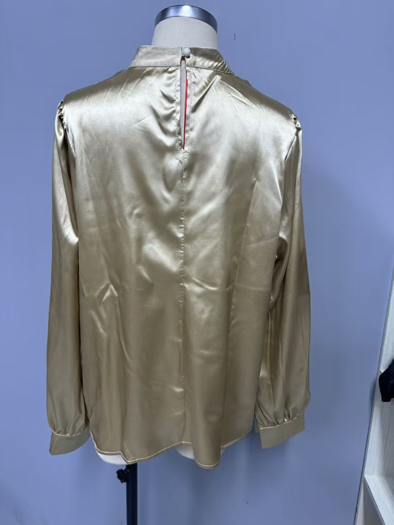 Stand-up Collar Puff Sleeve T shirt Women Satin All Match Long Sleeve Special Women Clothing