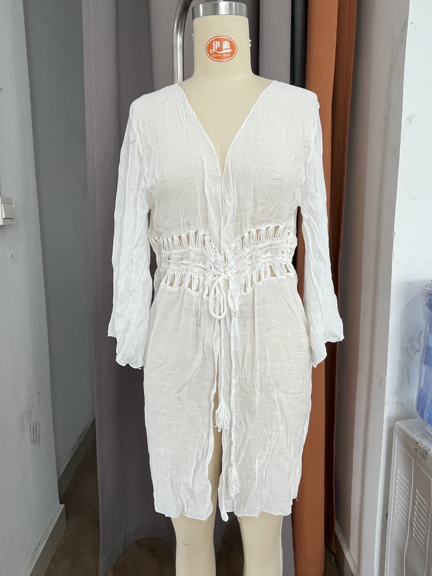 Stitching Hand Crocheting Beach Cover up Sexy Cutout Bell Sleeve Vacation Skirt Beach Cover Up