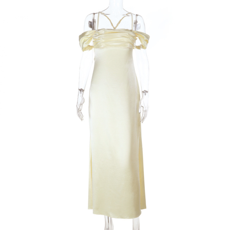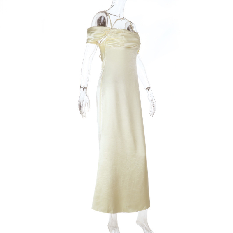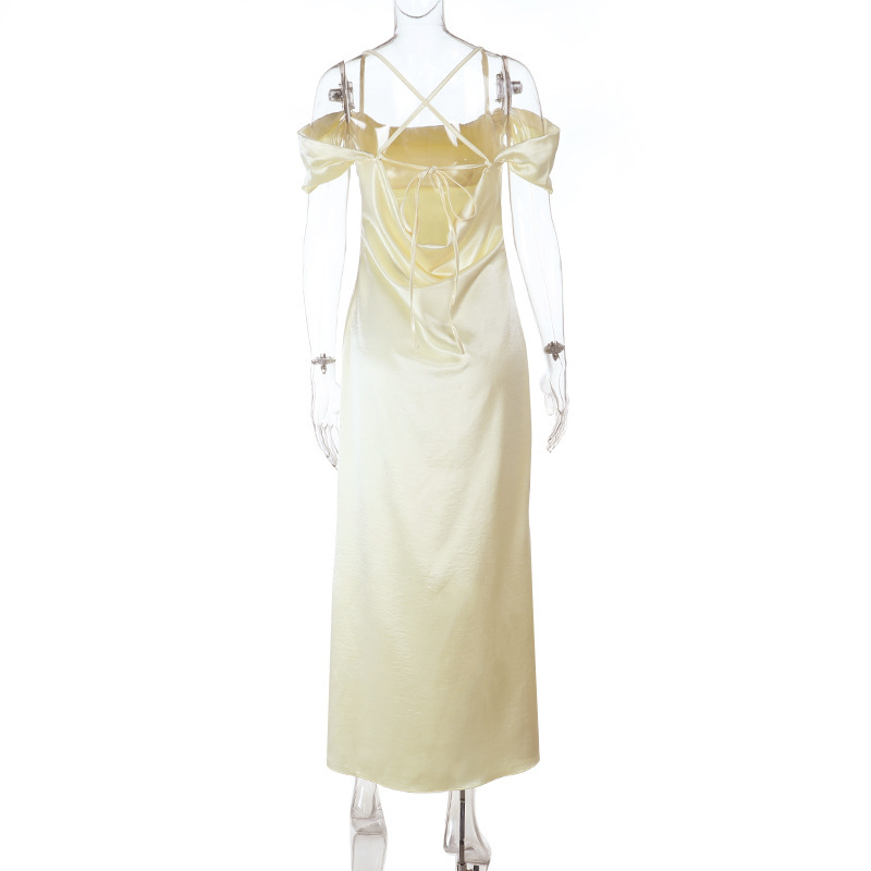 Strap Satin off Shoulder Evening Dress Backless Sexy Dress
