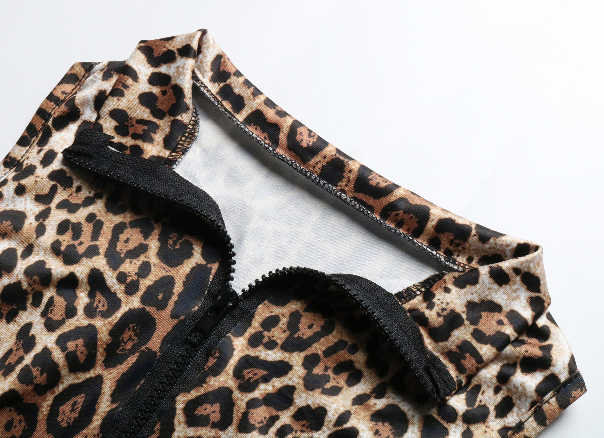 Street Women Clothing Summer Zipper Sleeveless Leopard Print Jumpsuit