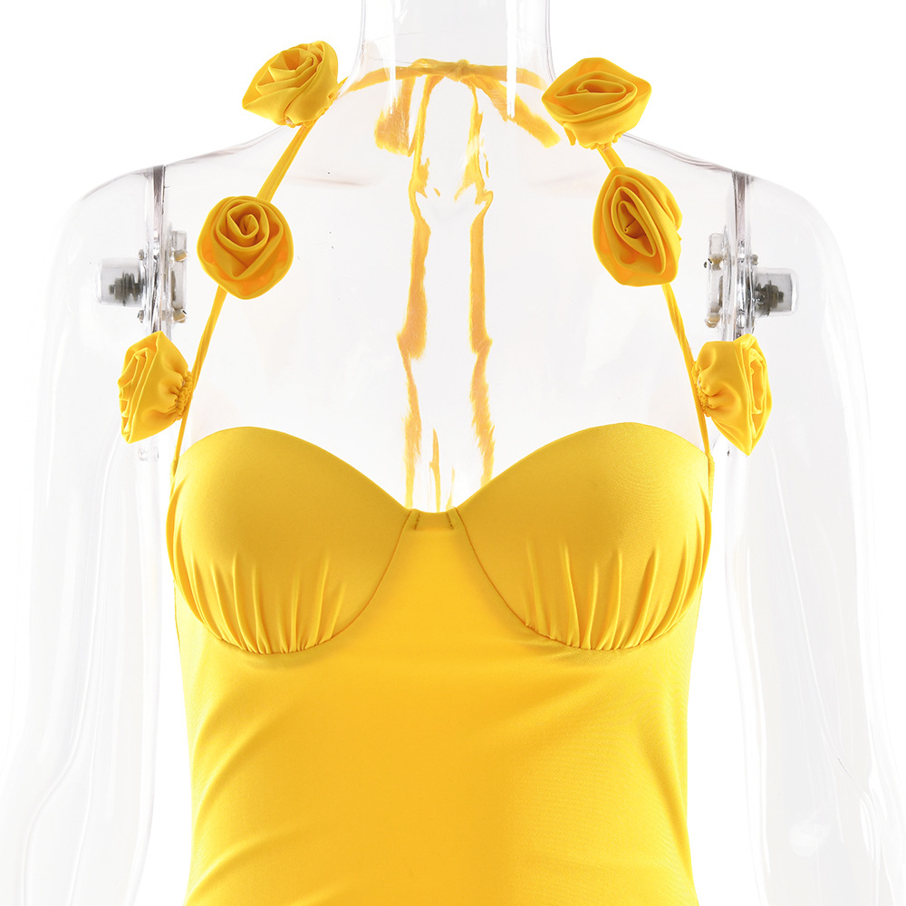 Summer Arrival Halter Backless Tube Top Dress Sexy Slim Solid Color Sticky Floral Evening Dress