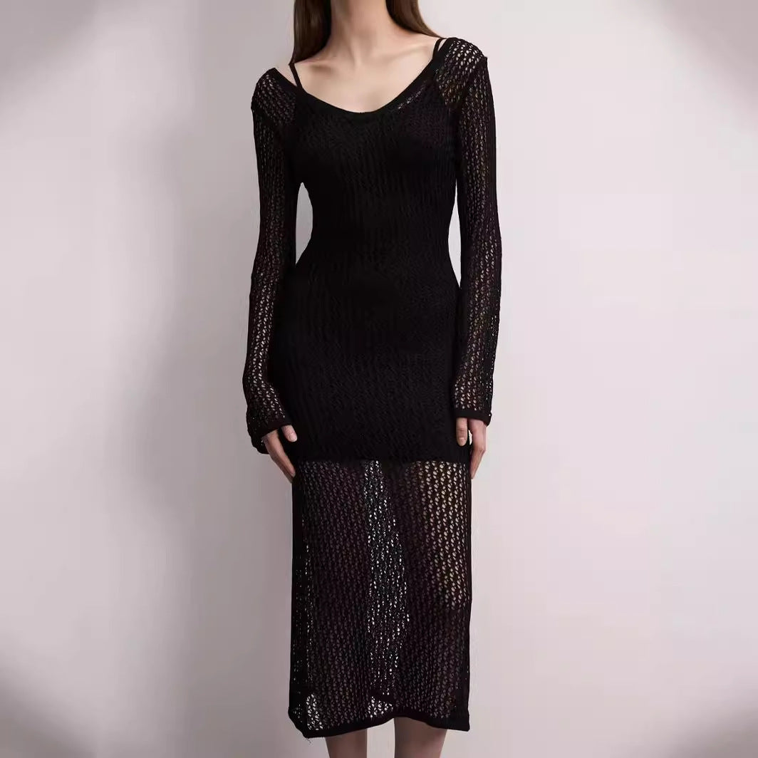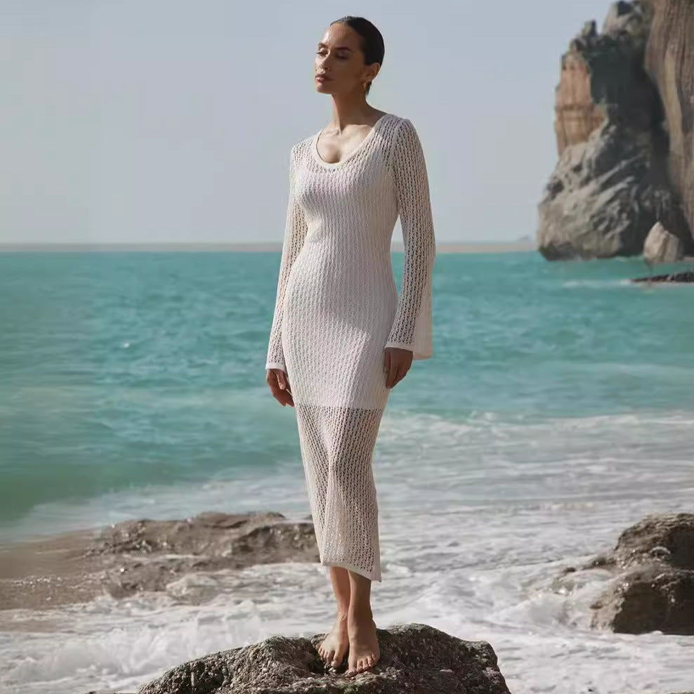 Summer Beach Dress Sexy Cutout See through Sun Protection by the Sea Beach Cover Up Knitted Dress