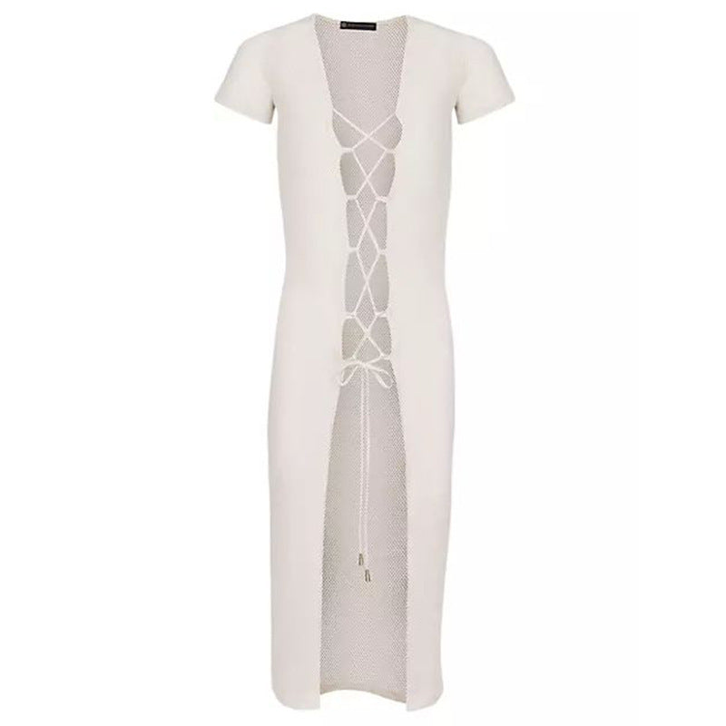 Summer Beach Dress Women Solid Color Sexy Hollow Out Cutout Beach Bikini Swimsuit Cover up Sun Protection Clothing
