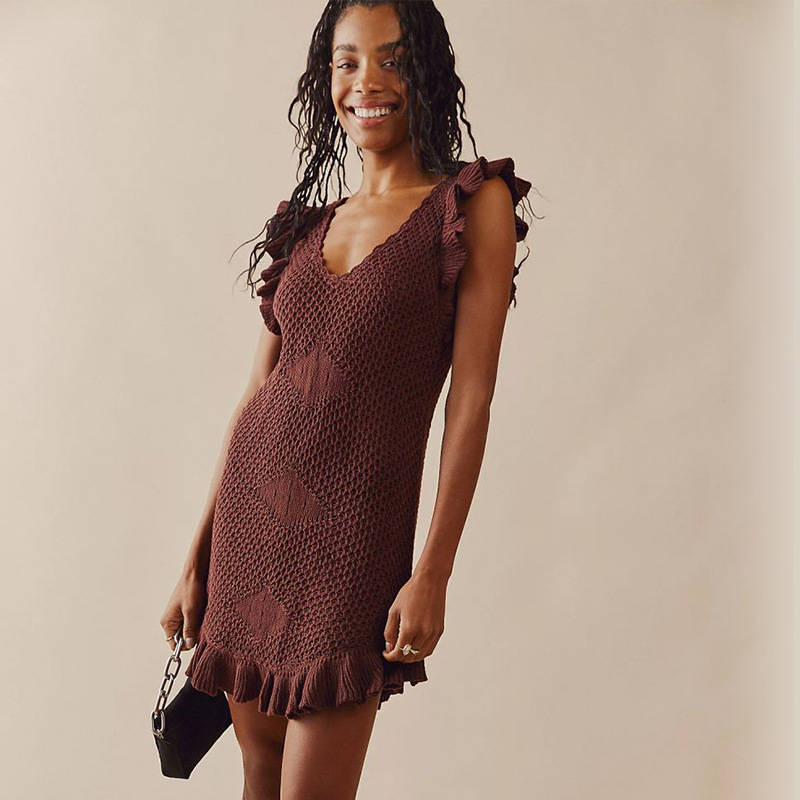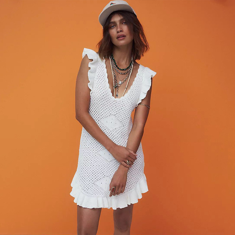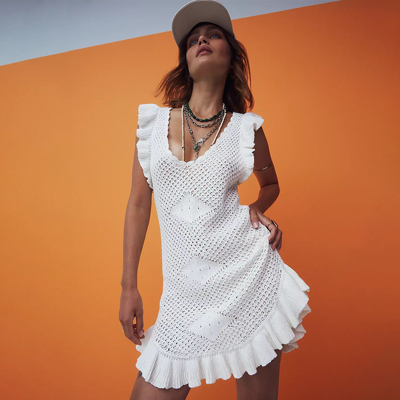 Summer Beach Dress Women Solid Color Sexy Knitted Hollow Out Cutout Bikini Swimsuit Blouse Sun Protective Clothing Crochet hook