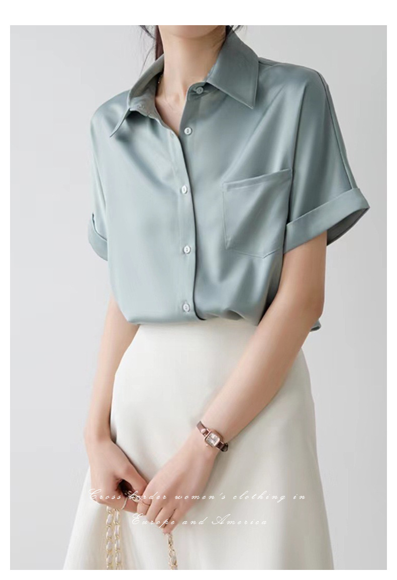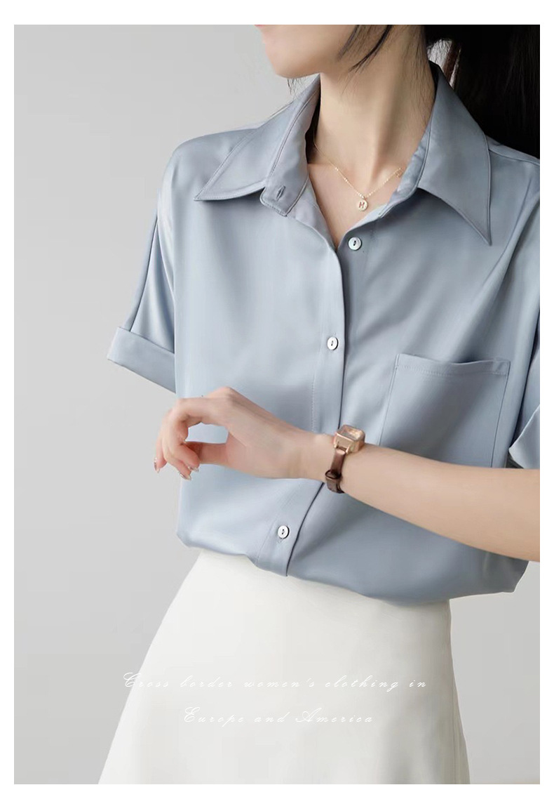 Summer Casual Satin Satin Short Sleeved Shirt Korean Professional White Collar Office Interview Shirt