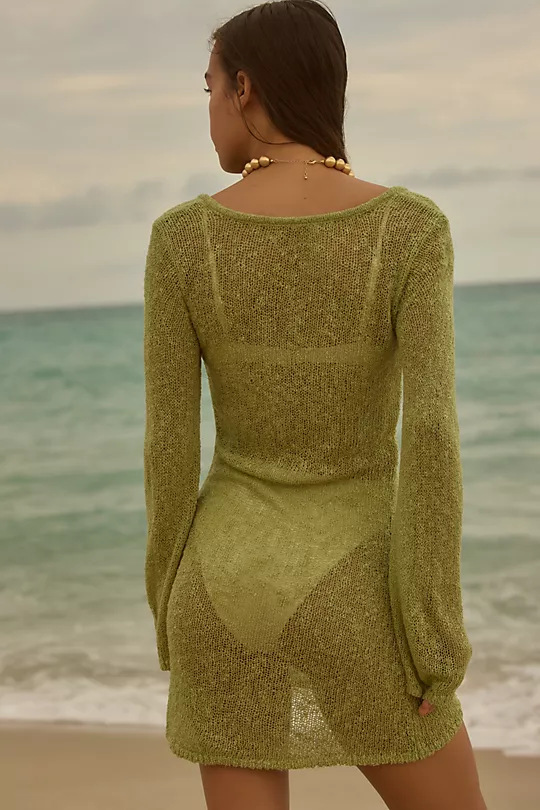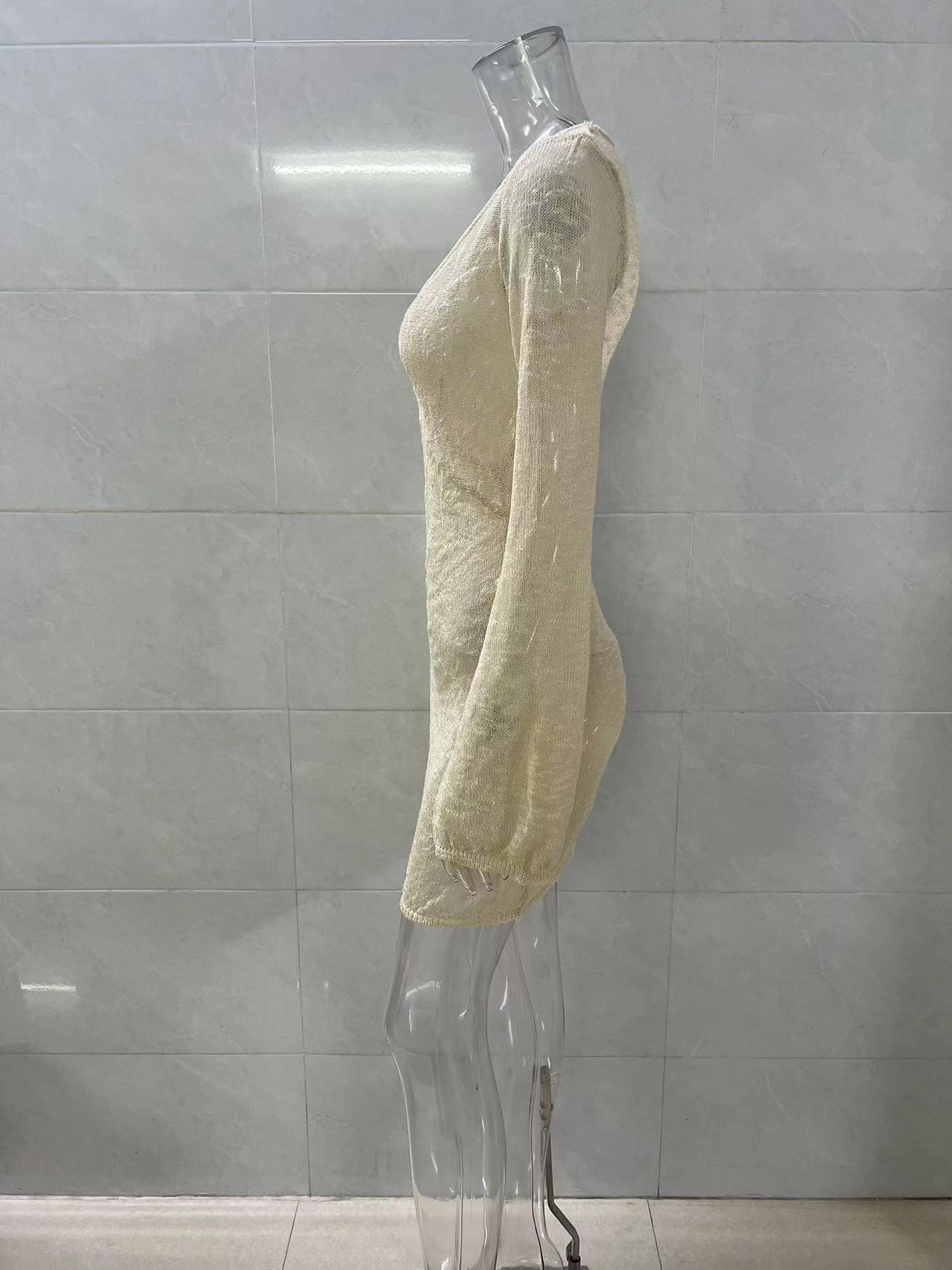 Summer Women Clothing Long Sleeved Blouse Beach Hollow Out Cutout Holiday Sweater