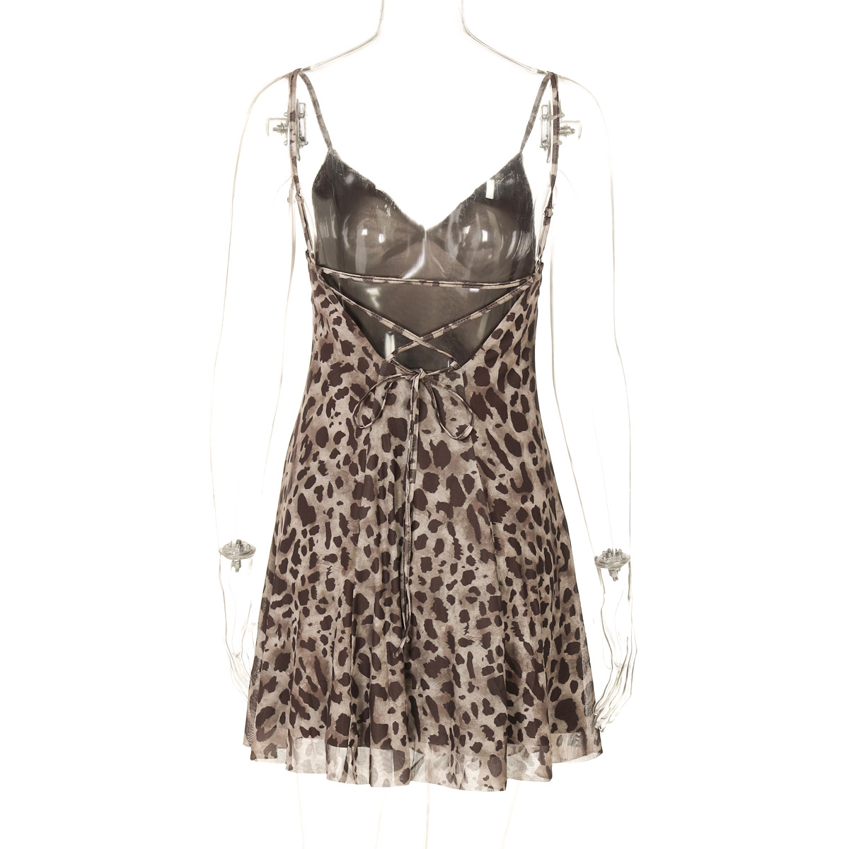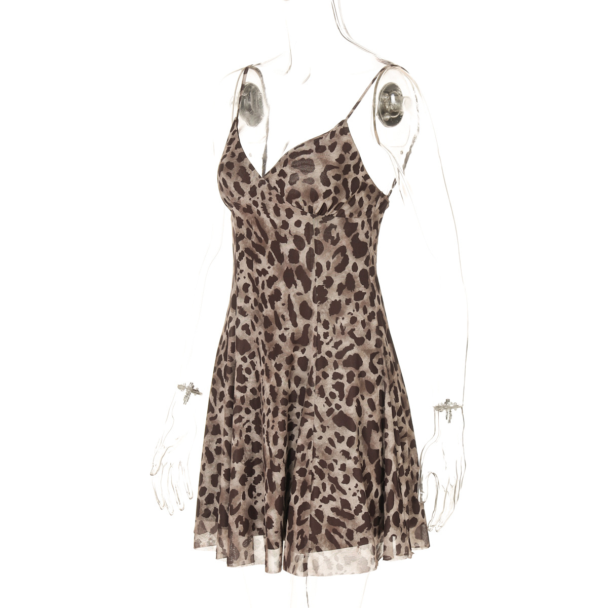 Summer Women Clothing Sexy Sexy V neck Mesh Printing Slip Dress