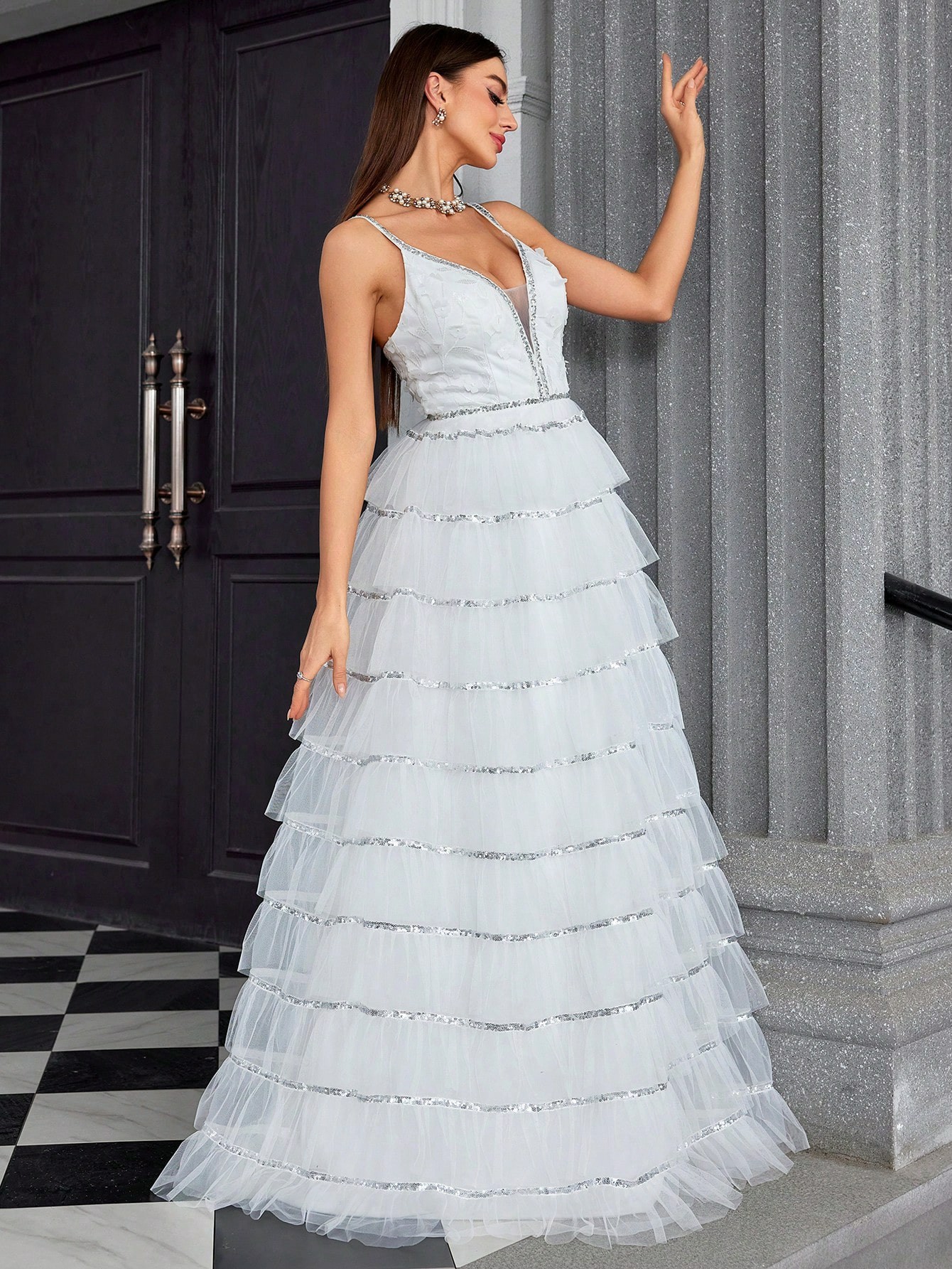 Suspender V neck Evening Dress Tube Top Dress Layered Women Dress