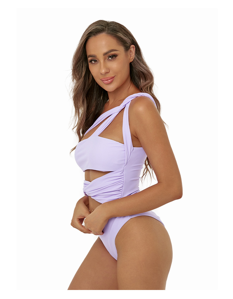 Swimsuit Solid Color Sexy One Piece Bikini Swimsuit One Shoulder Hollow Out Cutout Backless Swimsuit Women