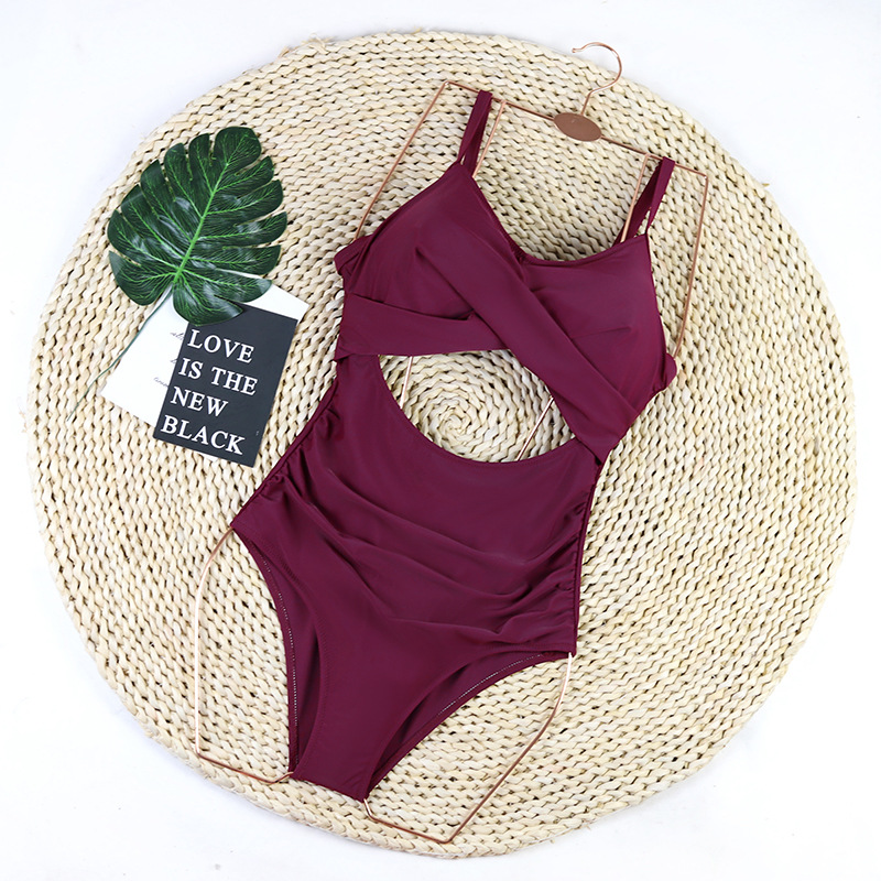 Swimsuit Women Halter Strap Beauty Back One Piece Swimsuit Pleated Belly Covering Thin Swimsuit