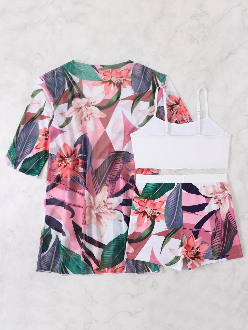 Swimsuit Women Print Casual Vacation Boxers Three Piece Sets Beach Cover up