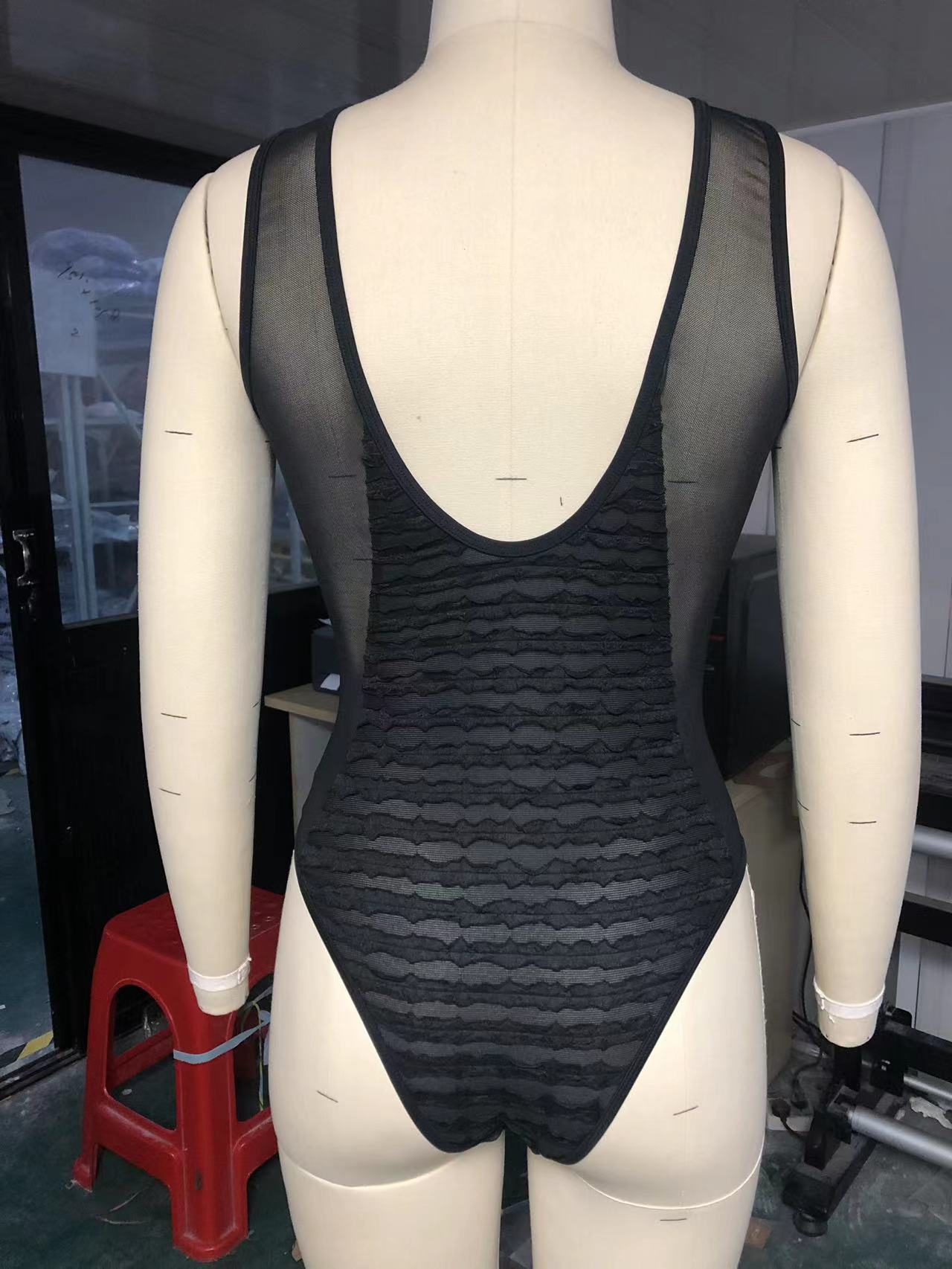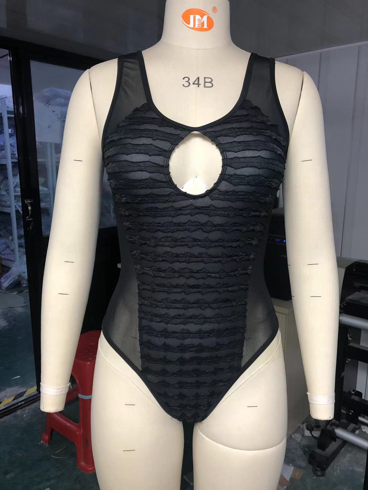 Swimsuit Women Solid Color Sexy Sheer Mesh Hollow Out Cutout Siamese Bikini