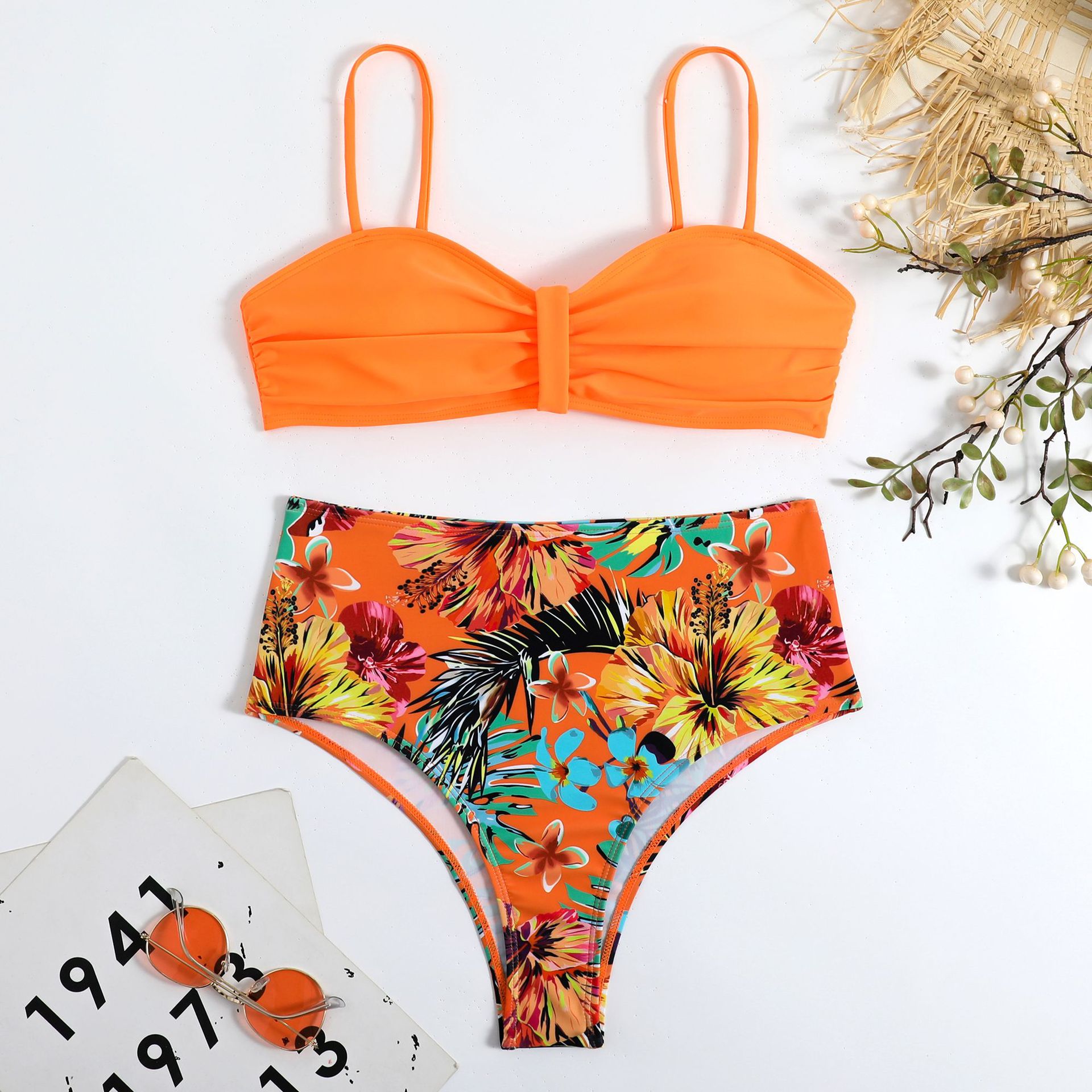 Swimsuit Women Split Bikini Retro Sexy Solid Color Printing Bikini Wear