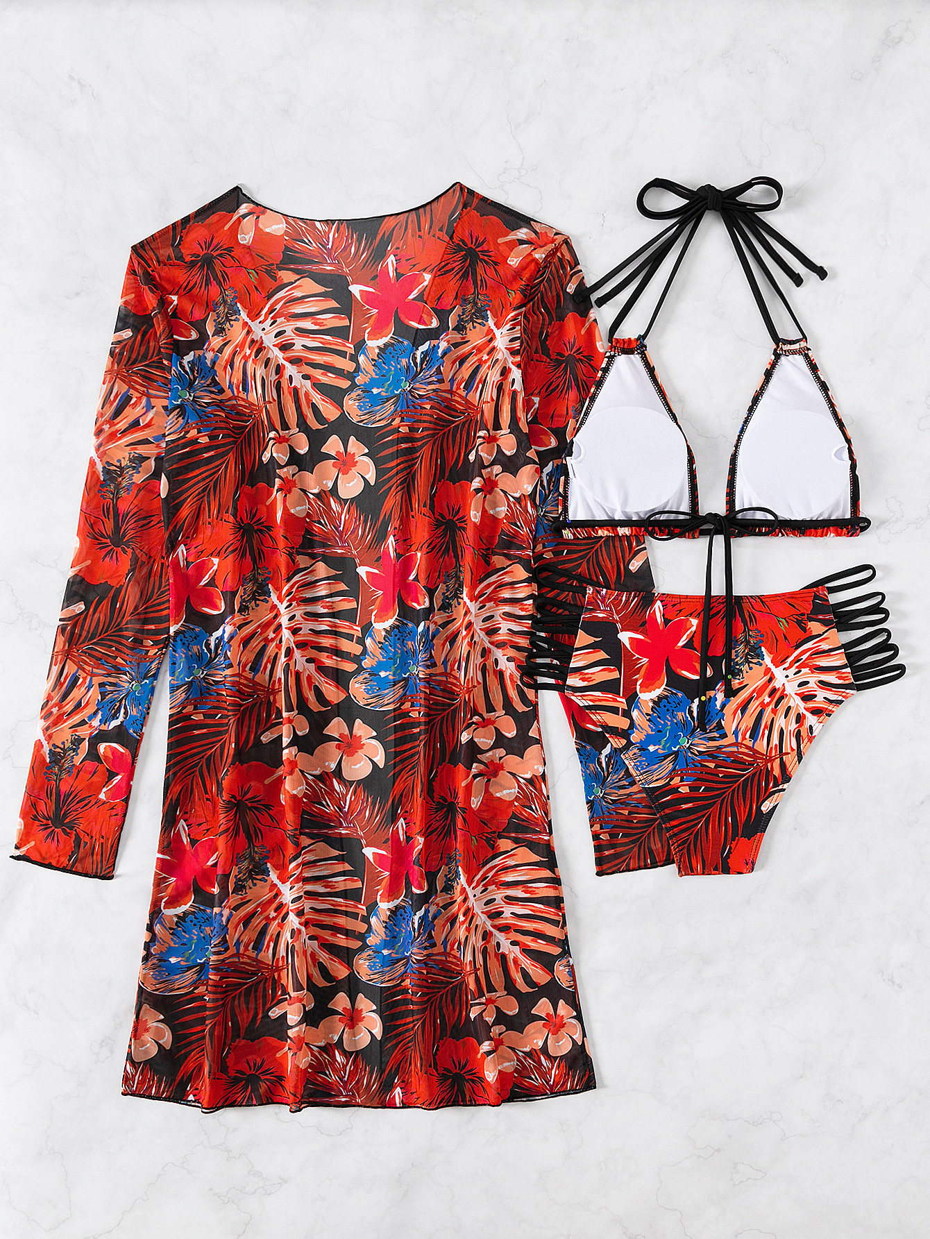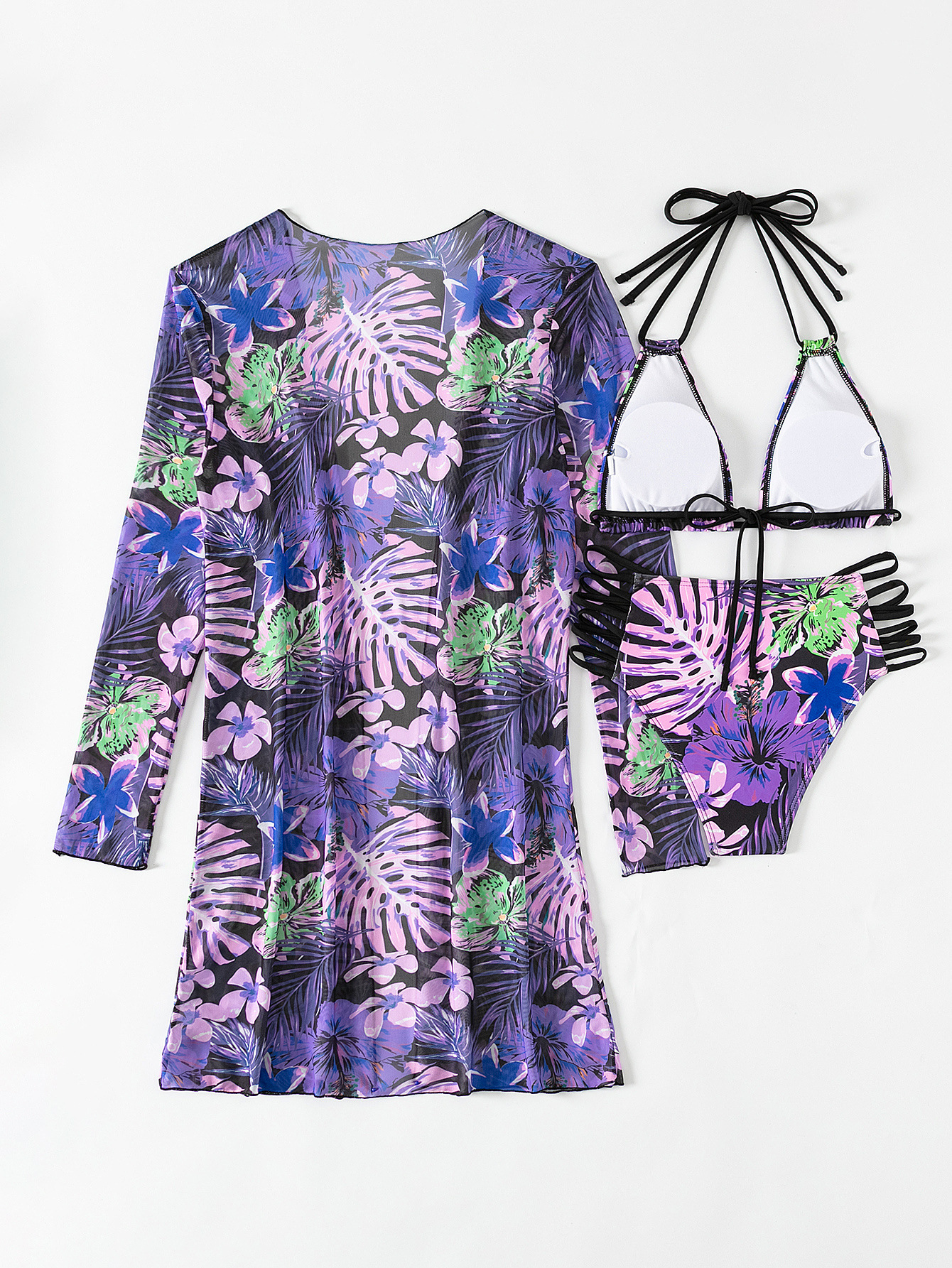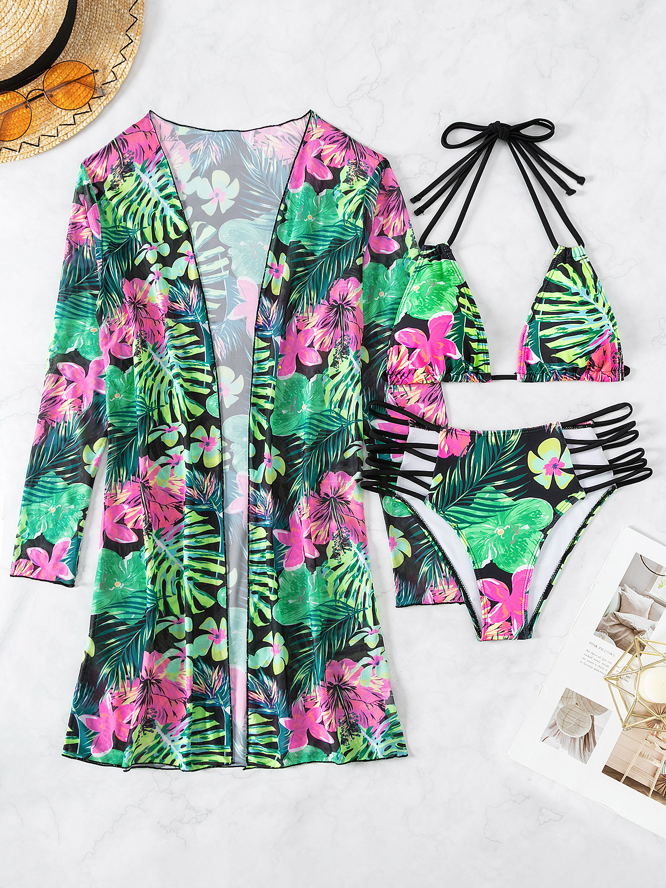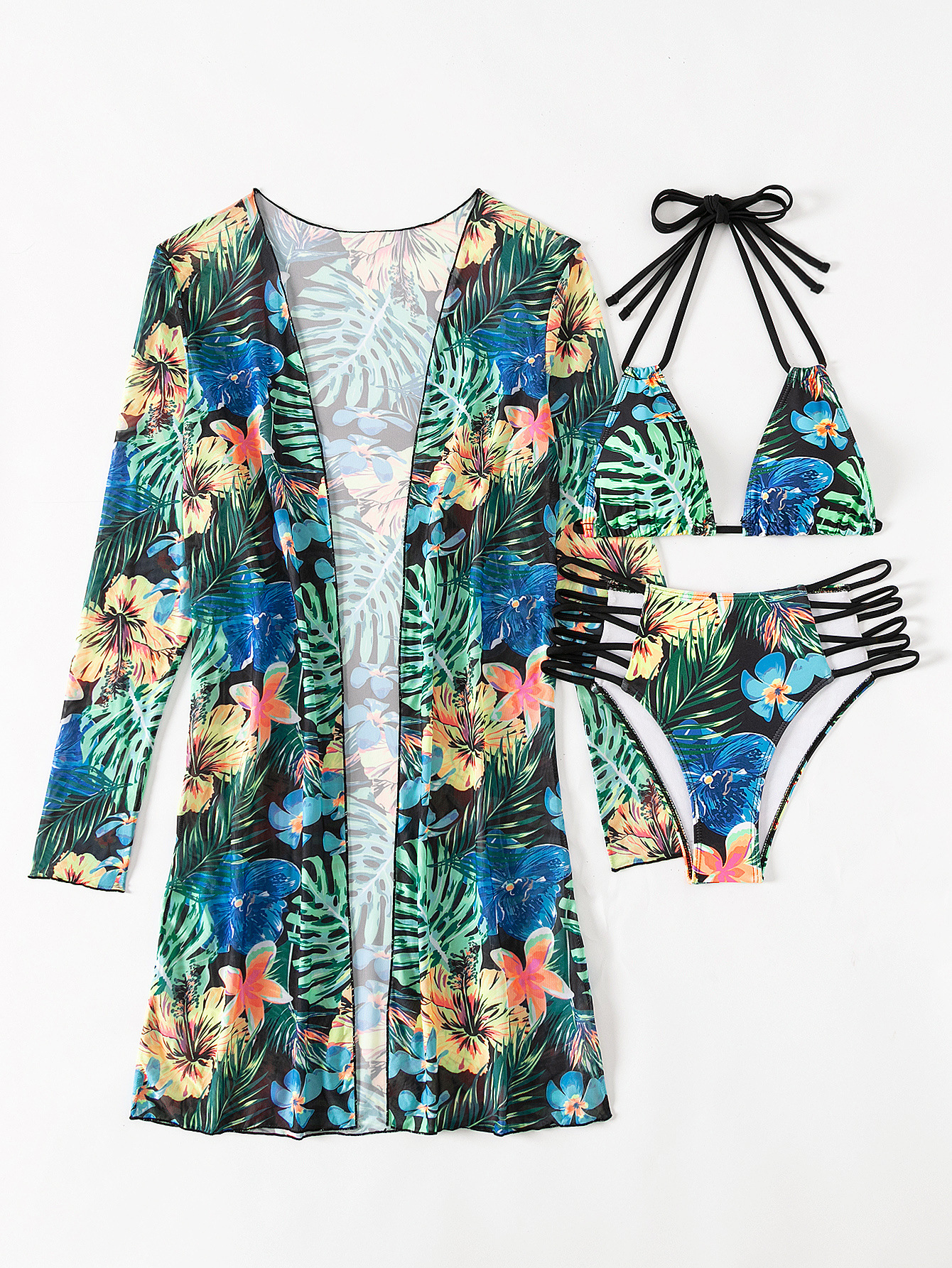 Swimsuit Women Split Three Piece Suit Internet Long Sleeves Printed Bikini Swimsuit