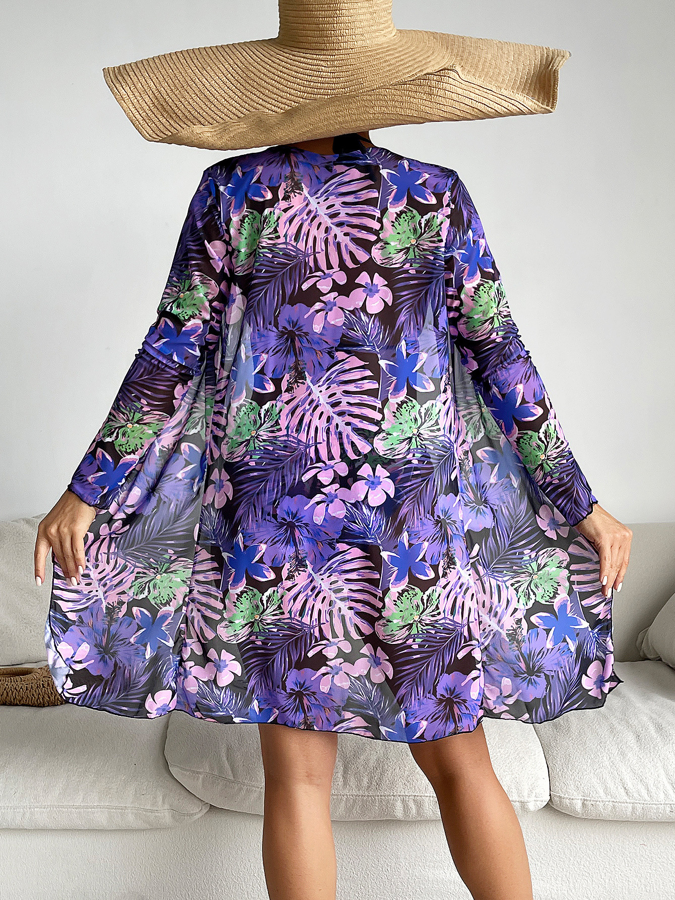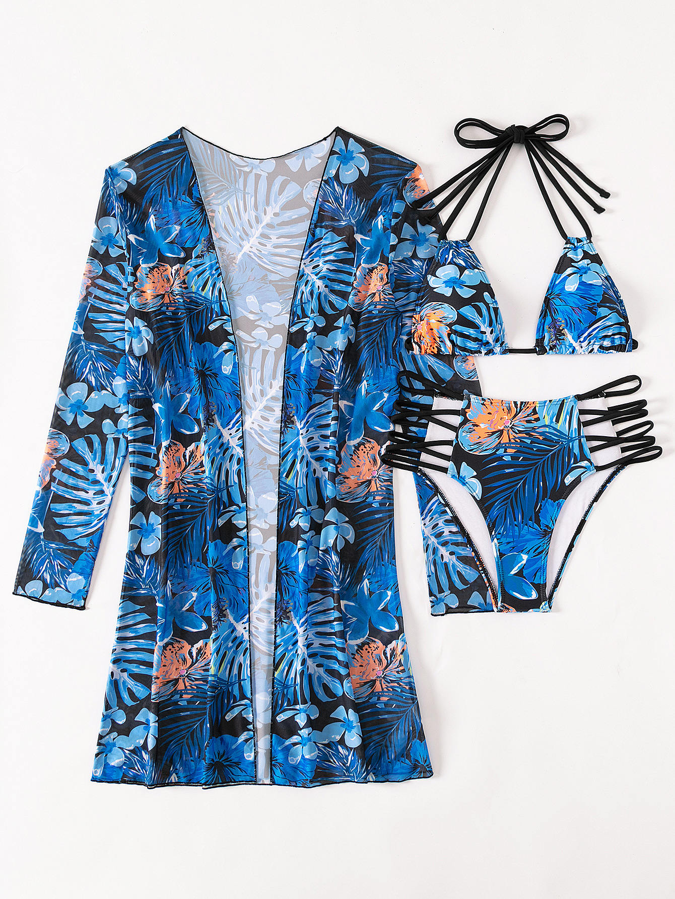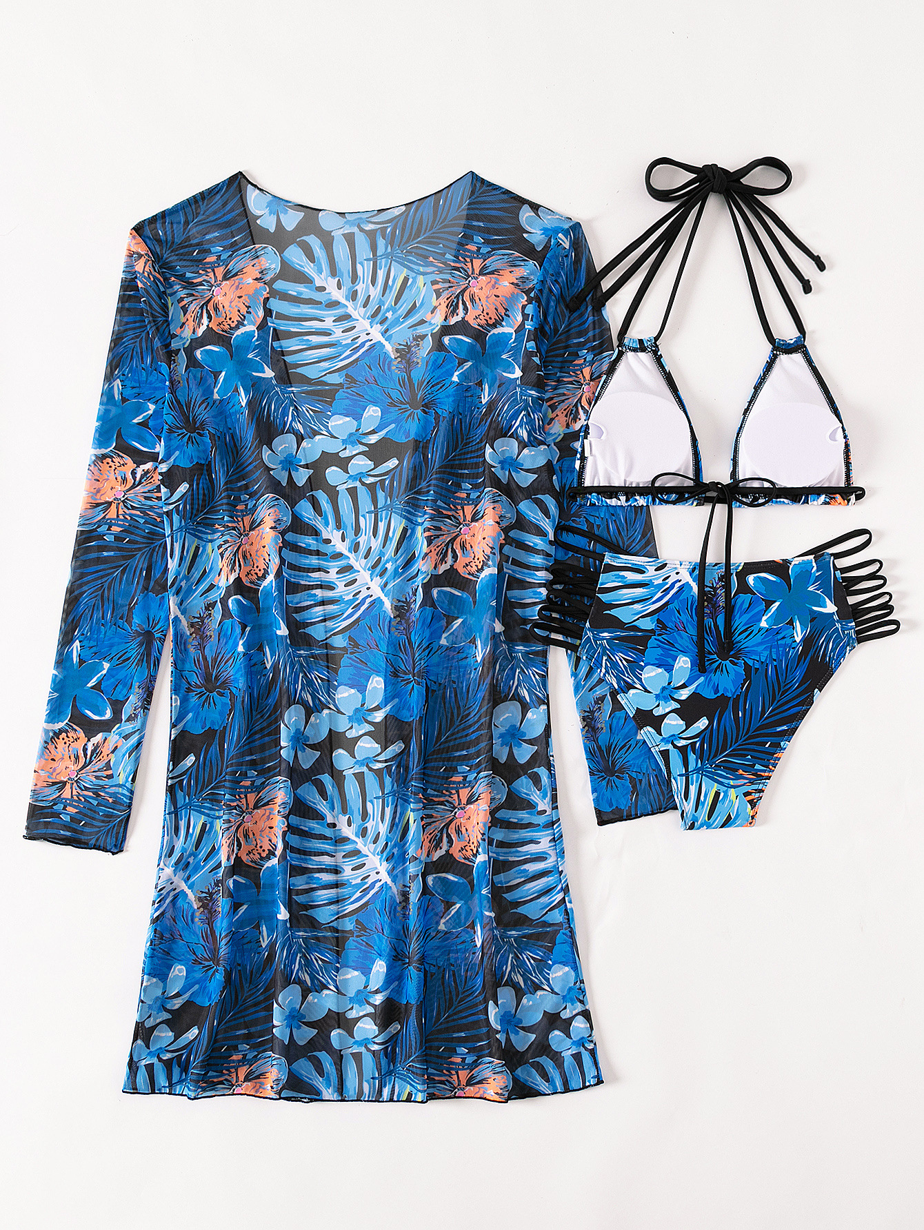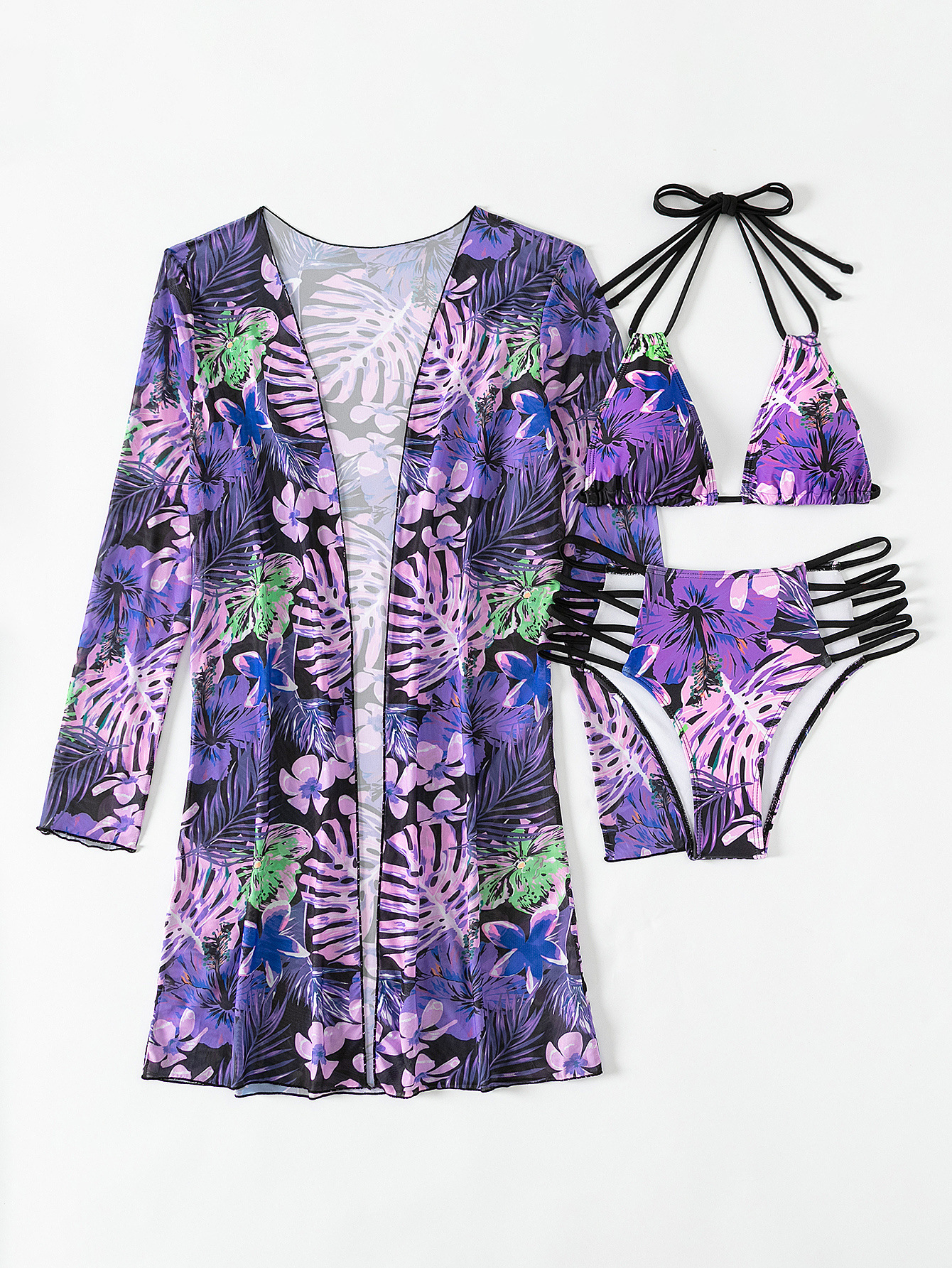 Swimsuit Women Split Three Piece Suit Internet Long Sleeves Printed Bikini Swimsuit